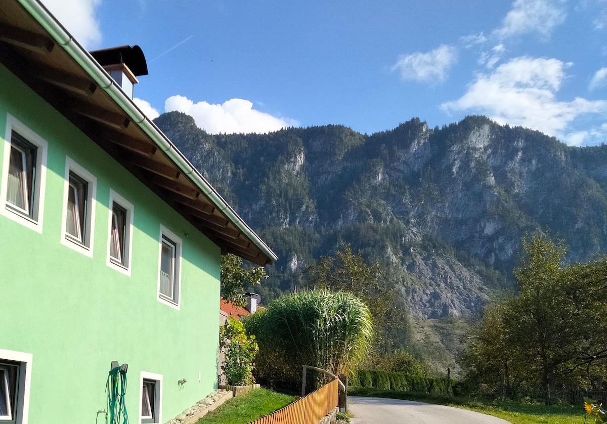 झहमेर कैसरच्या अनियंत्रित दृश्यांसह एक उबदार अपार्टमेंट आमच्या गेस्ट्सची वाट पाहत आहे. दोन बेडरूम्स चार लोकांना सामावून घेऊ शकतात. आंघोळीचे तलाव, मोटरवे आणि स्की एरिया कारने पटकन गाठले जाऊ शकतात. आमच्या घराच्या आसपास एक प्रवाह वाहतो, जो तुम्ही उन्हाळ्यात रिफ्रेशमेंटसाठी वापरू शकता.