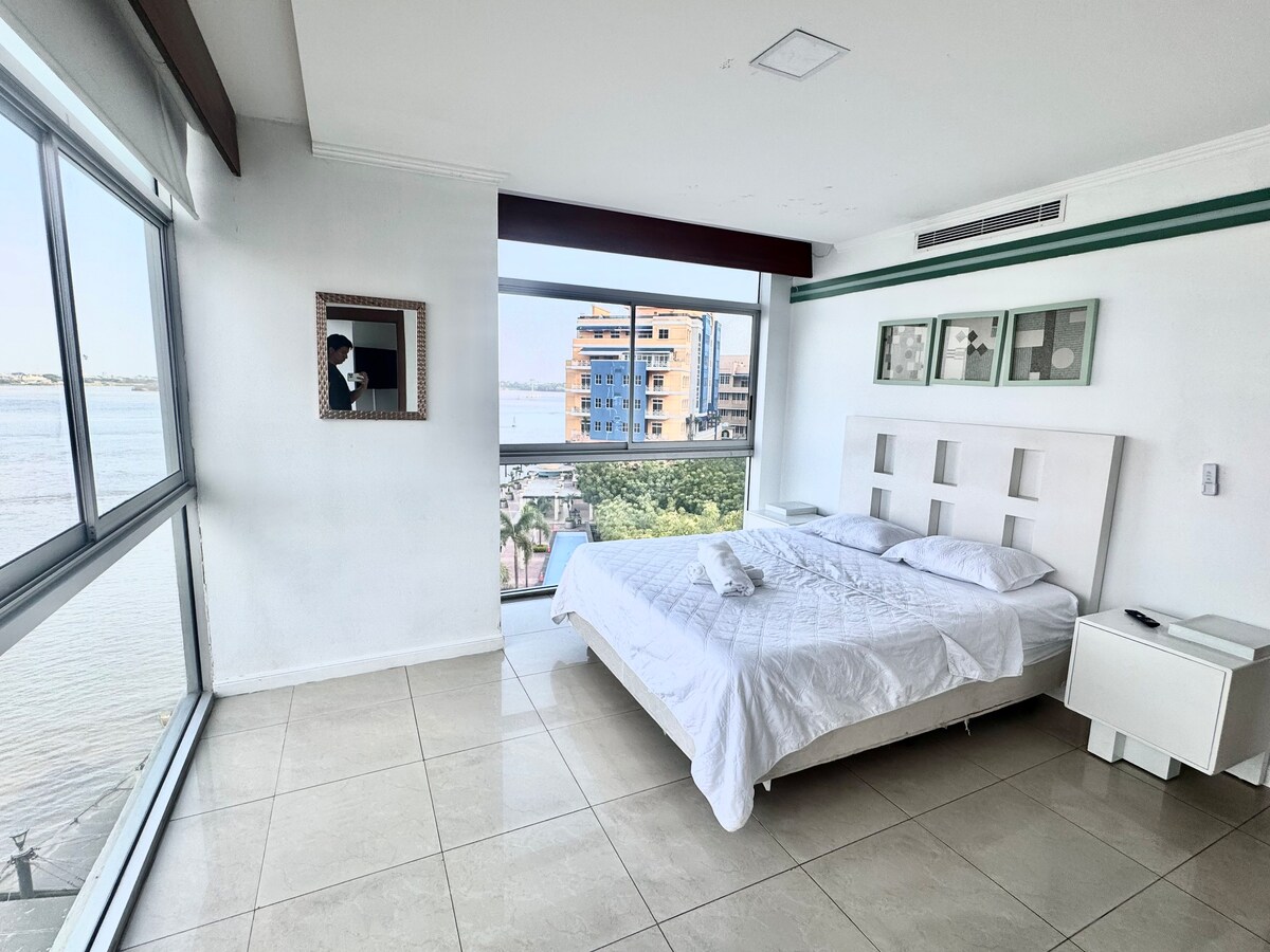 ग्वायाज नदीच्या पॅनोरॅमिक दृश्यांसह आरामदायक सुईट. हे ग्वायाक्विल शहराच्या सर्वोत्तम निवासी आणि व्यावसायिक भागात स्थित आहे. एअरपोर्टपासून 5 मिनिटांच्या अंतरावर आणि लँड टर्मिनलपासून 3 मिनिटांच्या अंतरावर, तुम्ही रेस्टॉरंट्स, बार आणि सुपरमार्केट्सपर्यंत जाऊ शकता, या सेक्टरमध्ये सुरक्षा कॅमेरे, खाजगी सुरक्षा, राष्ट्रीय पोलिस आणि इमारतीत आणि त्याच्या सभोवतालच्या परिसरात 24 - तास कन्सिअर्ज आहेत. या इमारतीत स्विमिंग पूल, जकूझी, सॉना आणि जिमसह एक मोठे सामाजिक क्षेत्र आहे. व्हिजिटर्सना परवानगी नाही