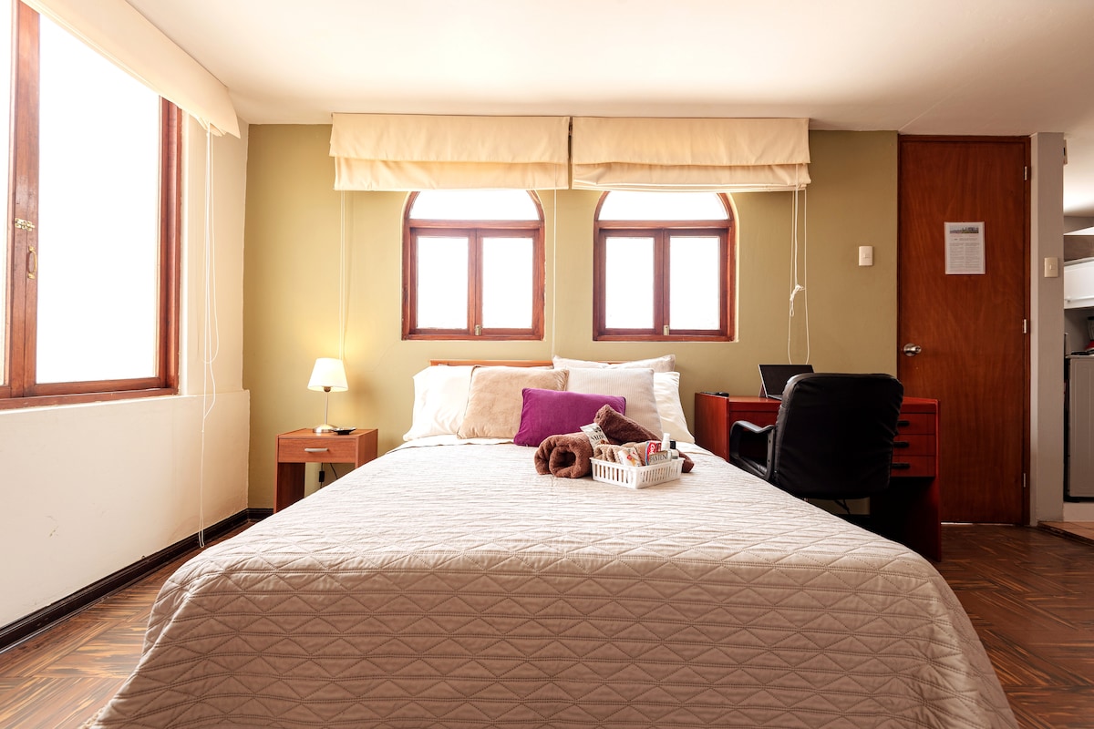 Boutique Loft high above central Miraflores. Master suite with private bath, walk-in closet and balcony with greenery. Architectural design, bright living-dining room and fully equipped gourmet kitchen. Smart TVs, high-speed WiFi, washer/dryer, weekly cleaning and 2 exclusive underground parking spaces. Steps from Kennedy Park, Av. Larco and the oceanfront: an intimate boutique experience for couples or business travelers.