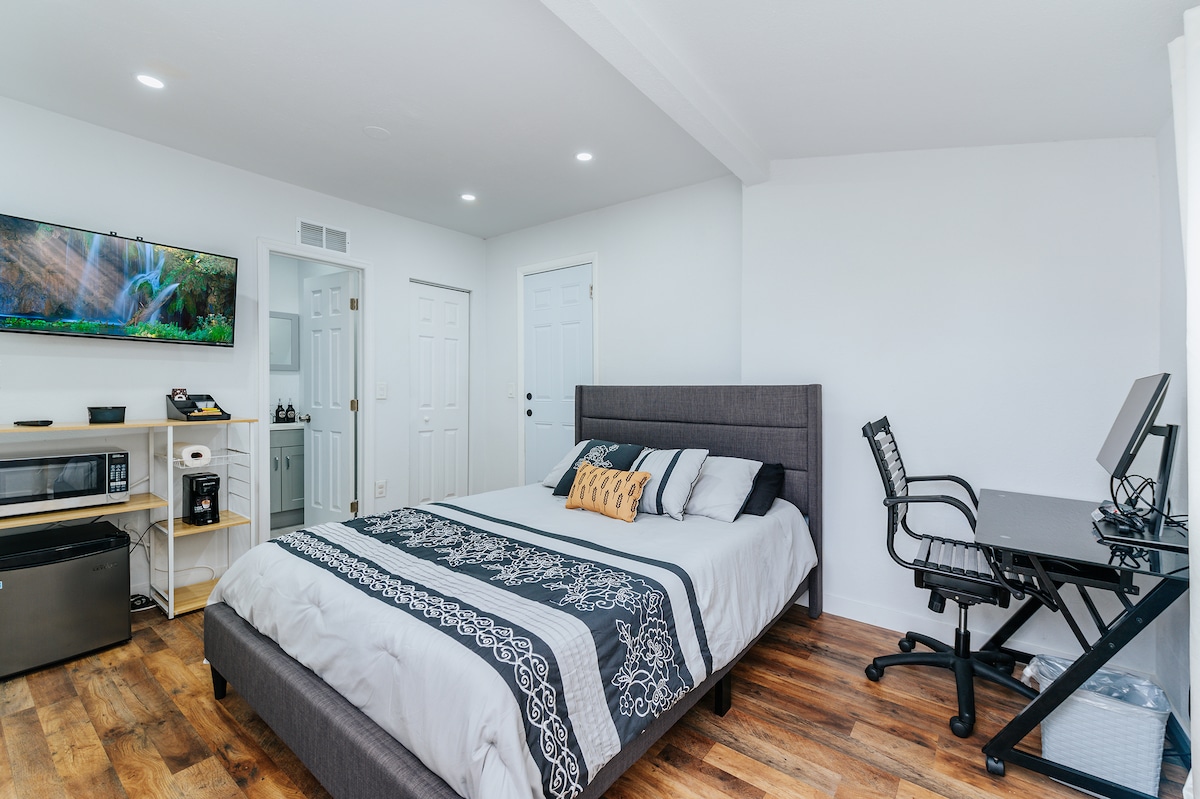 पूर्ण सुसज्ज भाड्याच्या जागेत एक स्वयंपाकघर आणि तुम्हाला एक महिना किंवा त्याहून अधिक काळ आरामात राहण्यासाठी आवश्यक असलेल्या सुविधा समाविष्ट आहेत. सबलेट करण्यासाठी हा एक उत्तम पर्याय आहे.