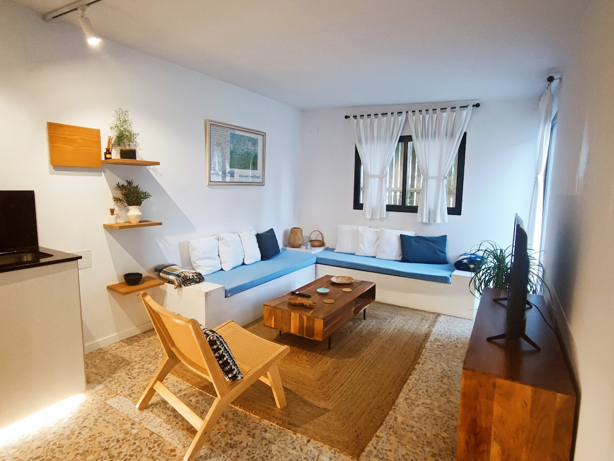 जीवनाच्या सर्व सुखसोयींसह तुम्हाला घरी असल्यासारखे वाटावे हे आमचे ध्येय आहे. जून 2023 मध्ये नूतनीकरण केलेले, लाकडी बीम्स, दगडी भिंती आणि फ्लोअरिंगसह छताच्या आत. आमच्याकडे पूर्णपणे सुसज्ज किचन, प्रशस्त लिव्हिंग आणि डायनिंग एरिया आहे. झोपण्याच्या वेळी 0.90 मीटरचे दोन बेड असलेली रूम. त्यांना डबल बेड बनण्यासाठी एकत्र ठेवता येणे आणि 1.50 मीटर बेड असलेल्या 2 रूम्स. बाहेर, तुम्ही लँडस्केप टेरेस आणि बार्बेक्यू असलेल्या पूलचा आनंद घेऊ शकता.