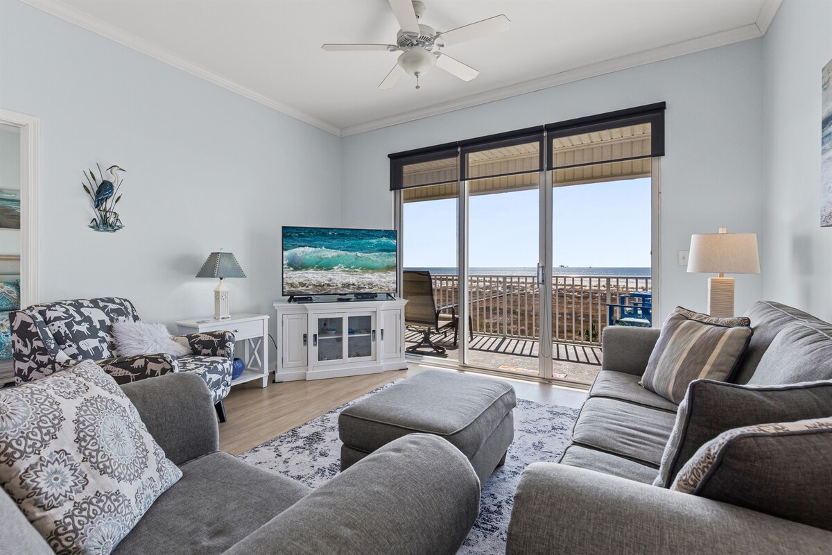 Holiday Isle is the premier complex of Dauphin Island! This beautifully appointed first floor unit with oversized balcony provides breathtaking views of the Gulf of Mexico! Tastefully decorated and bright, open floor plan. Amenities include indoor/outdoor pool, hot tub, sauna, gym, tennis/pickleball courts, covered parking, grilling area, beautiful lobby, gated entry and more. Dauphin Island is a peaceful retreat with local restaurants, great fishing, birdwatching and the most amazing sunsets.