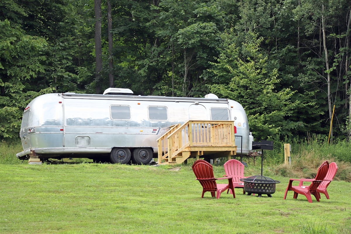 तुर्की हिलवरील एअरस्ट्रीममध्ये तुमचे स्वागत आहे! हे एअरस्ट्रीम एक अनोखा आणि साहसी लॉजिंगचा अनुभव देते. नयनरम्य लोकेशनवर पार्क केलेल्या सुंदर रीस्टोअर केलेल्या व्हिन्टेज एअरस्ट्रीममध्ये वास्तव्य करण्याची कल्पना करा. आत तुम्हाला उबदार पण स्टाईलिश फर्निचर, मूलभूत कुकिंगसाठी सुसज्ज एक कॉम्पॅक्ट किचन आणि एक आरामदायक क्वीन बेड आणि एक खाट सापडेल. कॉम्पॅक्ट आकार आरामात तडजोड करत नाही; त्याऐवजी, ते जागेचे मोहक आणि आरामदायकपणा वाढवते.