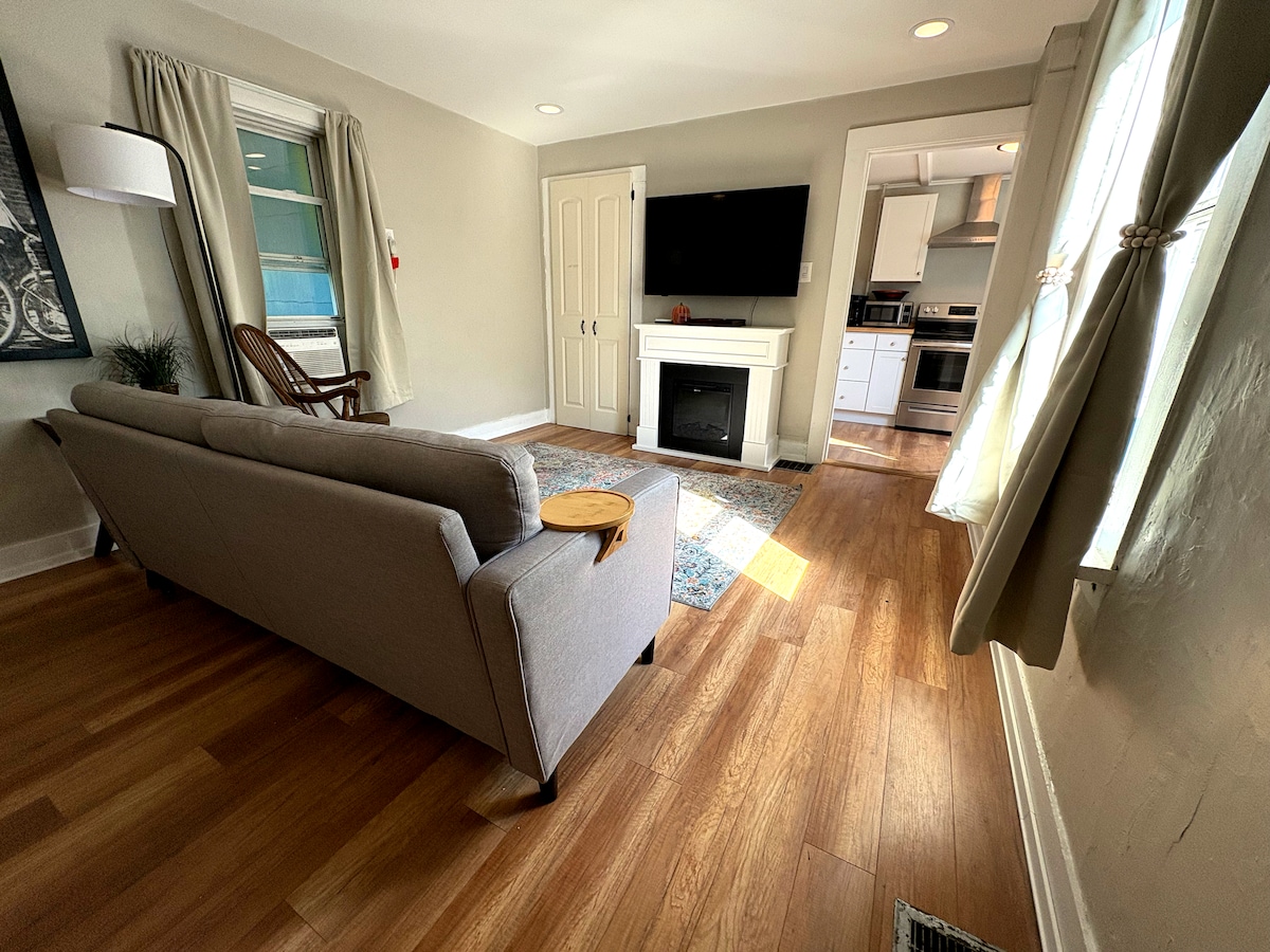 नुकतेच नूतनीकरण केलेल्या पहिल्या मजल्यावर असलेले हे एक सुंदर एक बेडरूमचे अपार्टमेंट आहे. स्टाईलिश जागा 2 लोकांसाठी परिपूर्ण आहे. यात एक चांगला आकाराचे किचन आहे आणि मागील बाजूस एक पोर्च आहे. शांत आणि सुरक्षित रस्त्यावर स्थित परंतु स्थानिक रेस्टॉरंट्स आणि कॉफी शॉप्स बंद आहेत. कवी सीट टॉवर आणि हायलँड पार्क सारख्या उत्तम दृश्यांसह सुलभ हाईक्स. तसेच डीअरफील्ड अकादमी, नॉर्थफील्ड माउंट हर्मन, द बेमेंट स्कूल, ईगलब्रूक स्कूल आणि स्टोनले - बर्नहॅम स्कूलच्या जवळ.