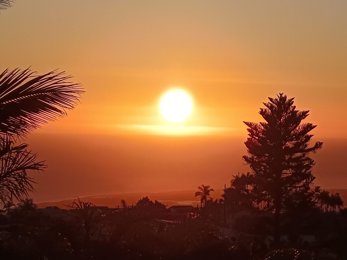 Venez découvrir notre bungalow/tonneau situé à Mont Vert les Bas, dans les hauts de Saint-Pierre. Vous apprécierez la vue sur la mer et les montagnes, notamment le piton des Neiges et le piton Mont-Vert. En plus de votre logement, vous aurez un petit jardin privatisé où vous pourrez préparer votre barbecue et prendre votre apéro. La plage de Saint-Pierre et celle de Grande Anse sont accessibles en 15 minutes de voiture. Une ligne de bus se trouve également à proximité (alternéo ligne 15).