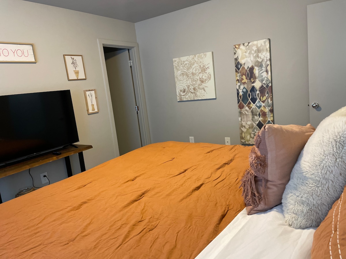 2 बेडरूम्स आणि 2 पूर्ण बाथरूम्स असलेले हे एक सुंदर, सोयीस्कर घर आहे. आम्ही आमची जागा स्वच्छ ठेवण्यात अभिमान बाळगतो आणि हे घर असल्यासारखे वाटण्यासाठी आम्ही प्रत्येक तपशीलाकडे झुकलो आहोत. अगदी नवीन प्लश गादी, एक विशाल मेमरी फोम बीन बॅग आणि आरामदायक सोफ्यासह, तुम्हाला कदाचित कधीही बाहेर पडायचे नसेल. बाईक्स, कूलर आणि डॉग क्रेट असलेले गॅरेज त्या अतिरिक्त सुविधा प्रदान करते ज्यामुळे तुमचे वास्तव्य सोपे होते