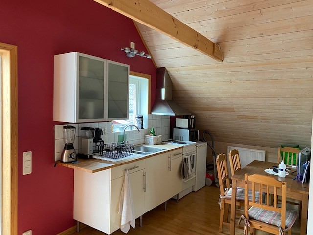 Mörrumsön येथील फार्मवर 6 लोकांपर्यंत नुकतेच नूतनीकरण केलेले निवासस्थान. अपार्टमेंट एका जुन्या कॉटेजमध्ये आहे आणि वरच्या मजल्यावर दोन बेडरूम्स आहेत, ज्यात प्रत्येकी दोन 90 सेमी रुंद बेड्स आहेत. खालच्या मजल्यावर वॉशिंग मशीन आणि ड्रायर तसेच एकत्रित लिव्हिंग रूम आणि किचन असलेले बाथरूम आहे. किचनमध्ये फ्रीज आणि फ्रीजर, मायक्रोवेव्ह आणि ओव्हन आणि स्टोव्ह आहे. लिव्हिंग रूममध्ये आणखी दोन झोपण्याच्या जागांसाठी एक सोफा बेड आहे. किचनपासून, बार्बेक्यू सुविधा आणि आऊटडोअर फर्निचरसह पॅटीओपर्यंत थेट दरवाजा आहे.