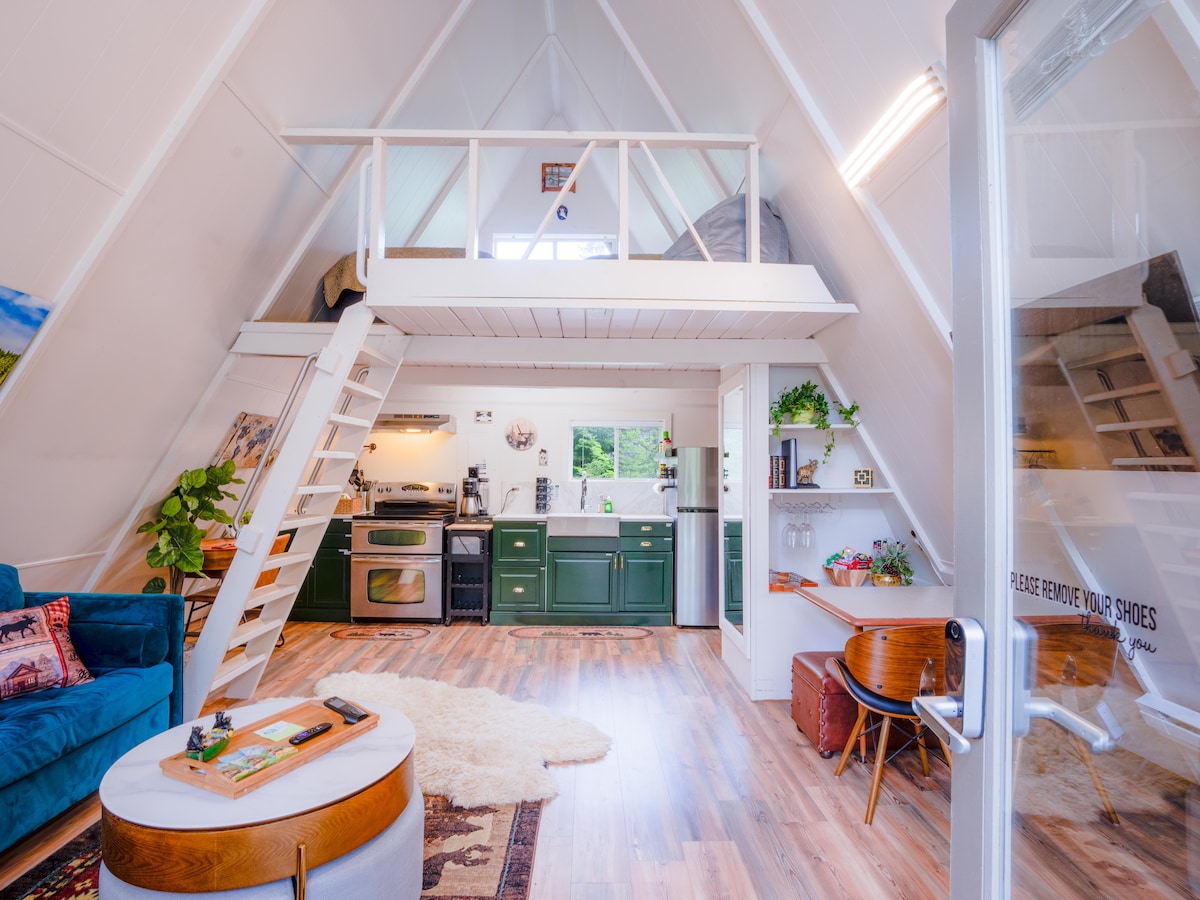 माऊंटपासून अगदी रस्त्यावर आरामदायक लिटिल ब्लू ए - फ्रेम केबिन. रेनियर नॅशनल पार्क निस्क्वाली प्रवेशद्वार. पार्कमध्ये एक दिवस हायकिंग केल्यानंतर पूर्ण किचन, बाथरूम आणि आधुनिक लिव्हिंग रूमसह घरी येण्याची योग्य जागा किंवा लाकडी स्टोव्हमध्ये चित्रपट आणि आगीसह दिवसभर कुरवाळणे आणि वास्तव्य करणे. जवळपासची रेस्टॉरंट्स सोयीस्कर सुविधांसह शांत माऊंटन गेटवे बनवतात. वायफाय समाविष्ट आहे. टीप: वरच्या मजल्यावरील बेडरूमच्या लॉफ्टमध्ये प्रवेश करण्यासाठी पुल डाऊन शिडी वापरण्यास सक्षम असणे आवश्यक आहे