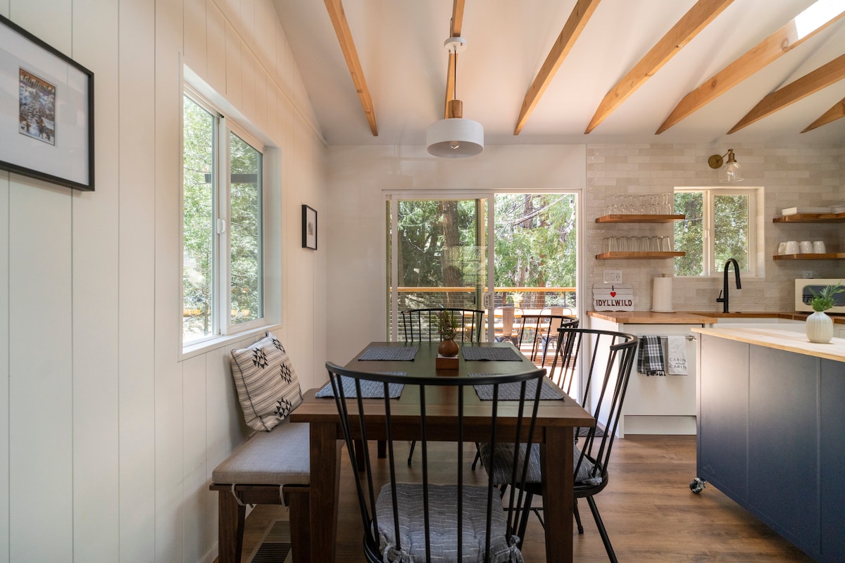 आयडिलविल्डच्या नॉर्थ रिजवर उंच, ट्रीटॉप टेरेस ओकच्या झाडांच्या छतावर बसले आहे आणि त्याच्या विस्तीर्ण अप्पर डेकमधून अप्रतिम दृश्ये देते. मध्य शतकातील आर्किटेक्चर आणि व्हिन्टेज - प्रेरित फर्निचरच्या मोहकतेचा आनंद घ्या. वैशिष्ट्यांमध्ये जमिनीपासून छतापर्यंत खिडक्या, ओपन - कन्सेप्ट लेआउट, एक रिक्रिएशन रूम आणि व्हीलचेअर ॲक्सेसिबिलिटीचा समावेश आहे. गावापासून 3 मिनिटांच्या अंतरावर सोयीस्करपणे स्थित, ट्रीटॉप टेरेसमधील आयडिलविल्ड आणि सुंदर सॅन जॅसिंटो पर्वतांच्या मोहक गोष्टींचा आनंद घेणे सोपे आहे.