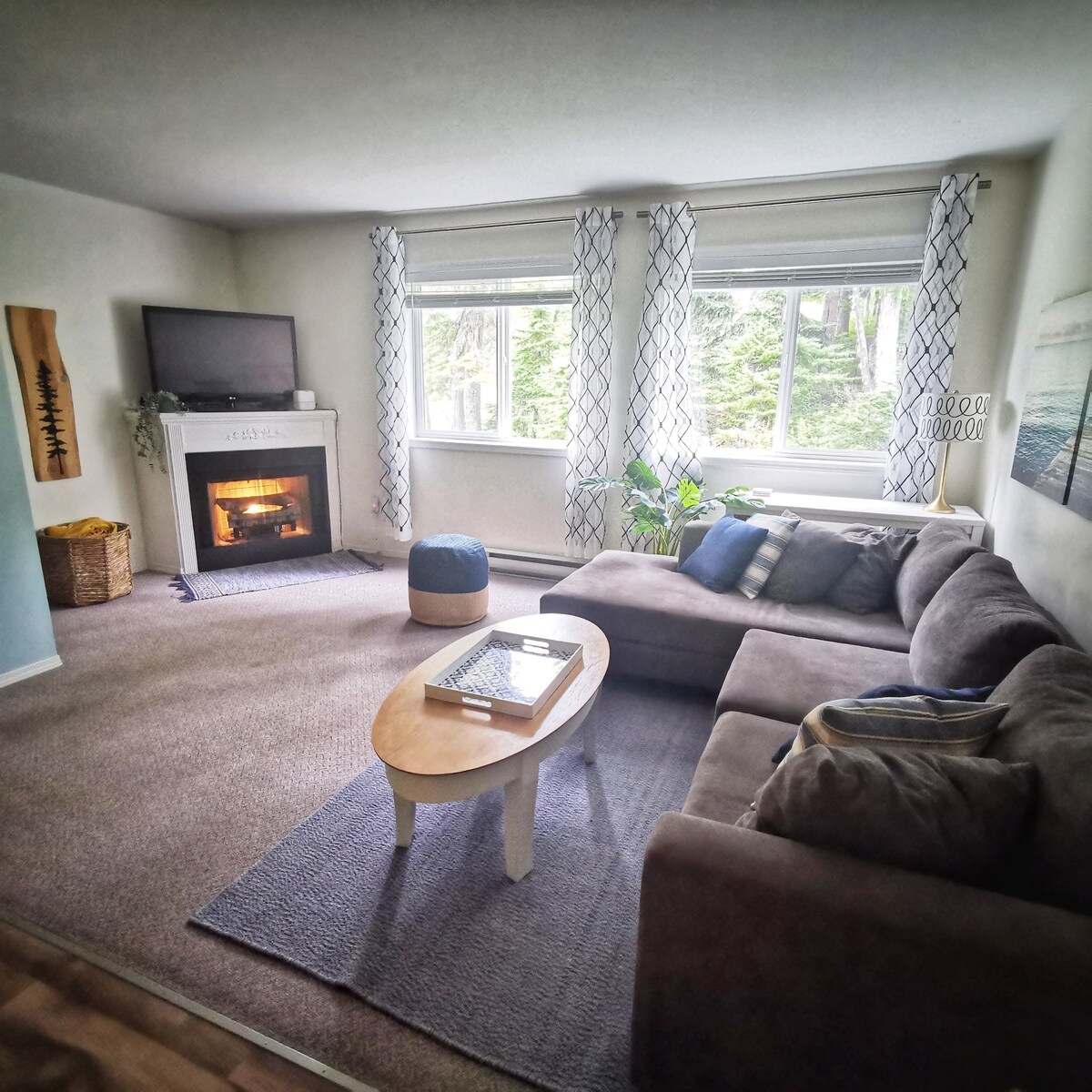 Our bright corner townhome is a year-round destination at Mt Washington Alpine Village, Vancouver Island BC. During Summer-Fall months - drive in. No vehicle access in Winter. Park in lot and hire luggage transport or short hike in. Located in treed setting close to chairlifts, Lodge, Strathcona Park hikes. Suits families or groups up to 5. We ask that you clean, vacuum, launder linens or bring your own. You'll find a well-equipped kitchen, sundeck, bbq, TV, sauna.