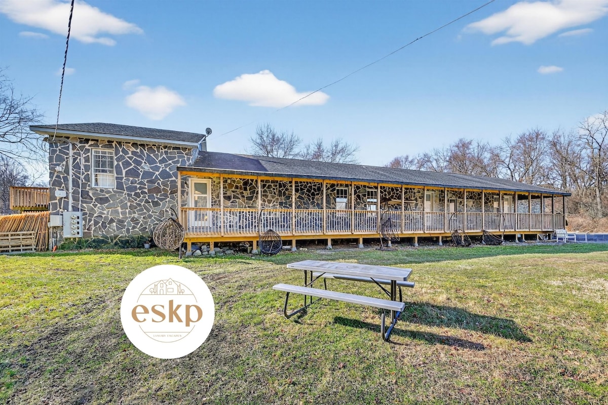 Our property boasts unparalleled views of Greenwood Lake and the mountains beyond. Our private garden features a seasonal waterfall cascading into a lily pond with fish and frogs. The shaded patio offers panoramic views and a gas grill. During the winter months, after skiing at nearby slopes, unwind in the claw foot tub or retreat to the cozy ambiance of our living room, with exposed wooden ceilings, a welcoming fireplace, a smart TV, a record player and board games.