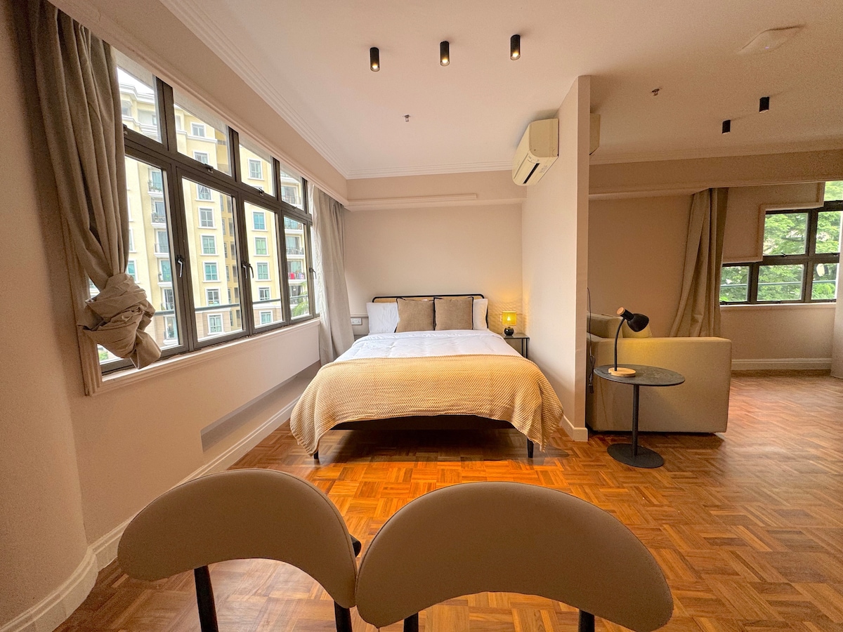 आमची स्टुडिओ अपार्टमेंट्स आरामदायक आणि त्रास - मुक्त वास्तव्याच्या शोधात असलेल्या जोडप्यांसाठी, व्यावसायिकांसाठी किंवा डिजिटल भटक्यांसाठी आदर्श आहेत. फारर पार्कच्या दोलायमान आणि मध्यवर्ती भागात वसलेले, आम्ही सीबीडी, डाउनटाउन शॉपिंग आणि खाडीजवळील चायनाटाउन, फोर्ट कॅनिंग आणि गार्डन्स यासारख्या आवडीच्या ठिकाणांपासून फक्त थोड्या अंतरावर आहोत. एअरपोर्टपासून 25 मिनिटांच्या अंतरावर आहे. आम्ही फारर पार्क MRT स्टेशनपासून 7 मिनिटांच्या अंतरावर आहोत, आसपासच्या परिसरात मॉल्स, हॉकर्स, कॅफे आणि सुविधा स्टोअर्स आहेत.
