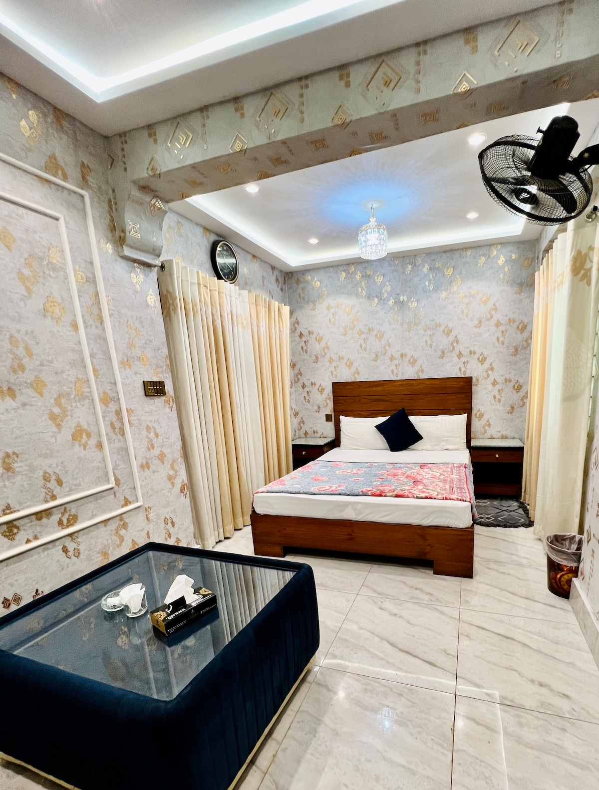 फ्लोटिंग बेड, स्टारलाईट सीलिंग आणि लिफ्टचा ॲक्सेस — मल्टानचे सर्वात सौंदर्याचे 1 - बेडचे वास्तव्य. एस्केप ऑरा – बुच व्हिलाज, मल्टानमधील लक्झरी वास्तव्य स्टारलाईट सीलिंग, फ्लोटिंग बेड आणि मोहक डार्क - लाईट थीमसह मल्टनच्या पहिल्या सौंदर्याचा अपार्टमेंटचा अनुभव घ्या. स्वतःहून चेक इन आणि चेक आऊटसह संपूर्ण गोपनीयतेचा आनंद घ्या. बुच व्हिलाजमध्ये स्थित, इम्तियाझ मेगा मार्ट, युनिव्हर्सल सिनेमा आणि बुच इंटरनॅशनल हॉस्पिटलपासून काही अंतरावर. केवळ कुटुंब आणि व्हेरिफाईड गेस्ट्स. अविवाहित जोडप्यांना / पार्टीजसाठी परवानगी नाही.