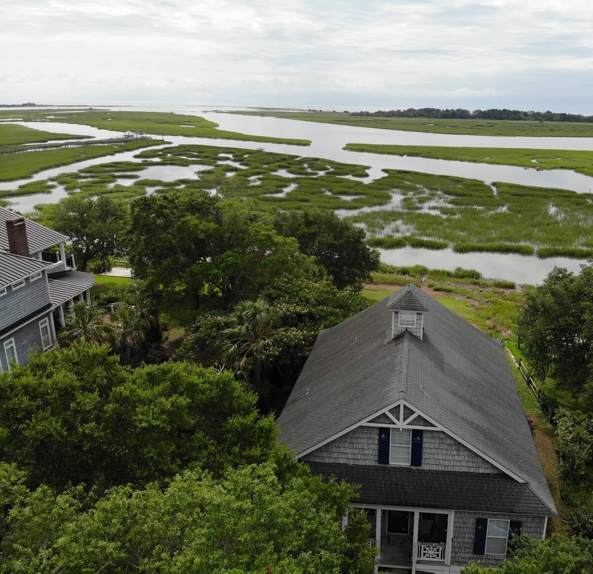 आम्ही वॉटरफ्रंटवर आहोत, तसेच मरेल्स इनलेटचा नैसर्गिक भाग देखील आहे. आमच्याकडे आमच्या अंगण आणि बॅकयार्डमधून सुंदर सूर्योदय आणि इनलेटचे दृश्ये आहेत. ईस्ट कोस्ट ग्रीनवेचा भाग असलेला वॅकमाऊ नेक बाईकवे आमच्या घरासमोर आहे. (तुमची सायकल घेऊन या) हंटिंग्टन बीच स्टेट पार्क आणि ब्रूकग्रीन गार्डन्स आमच्या दक्षिणेस 1 मैल. मार्श वॉक उत्तरेपासून 2 मैलांच्या अंतरावर आहे. चालण्याच्या अंतरावर, ग्रॅहॅम्स लँडिंग रेस्टॉरंट आमच्यापासून बरेच दूर आहे. दक्षिणी हॉप्स रस्त्याच्या पलीकडे आहेत.