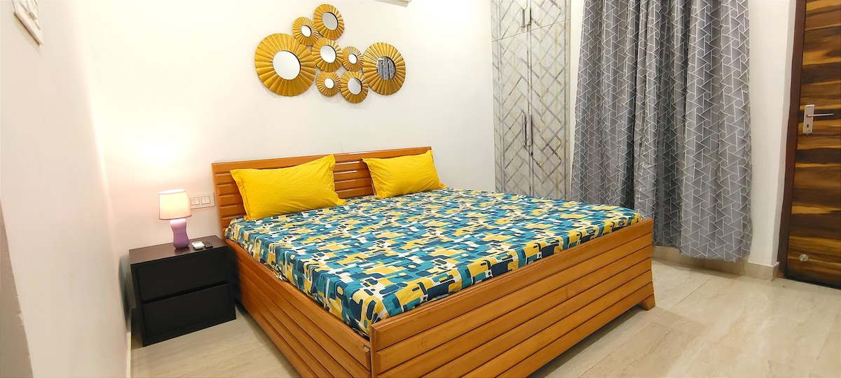आमच्याकडे प्रेमाने बांधलेले एक सुंदर 02 बेडरूमचे घर आहे. यात विशाल बाल्कनीसह शहर, आकाश आणि हिरवळीचे अखंड दृश्य आहे. लिव्हिंगची जागा दोन्ही बेडरूम्ससह संलग्न वॉशरूम्ससह आरामदायक आणि आरामदायक आहे. किराणा सामान, रेस्टॉरंट्स आणि फ्लॅटच्या अगदी खाली असलेल्या गेटेड सोसायटीमध्ये GT रोडपासून फक्त 200 मीटर अंतरावर आहे. 24*7 सुरक्षा आणि एकाधिक कार्ससाठी विनामूल्य पार्किंगची जागा असलेली जागा खूप सुरक्षित आहे. फक्त स्वतःहून चेक इन करा आणि तुमच्या वास्तव्याचा आनंद घ्या.