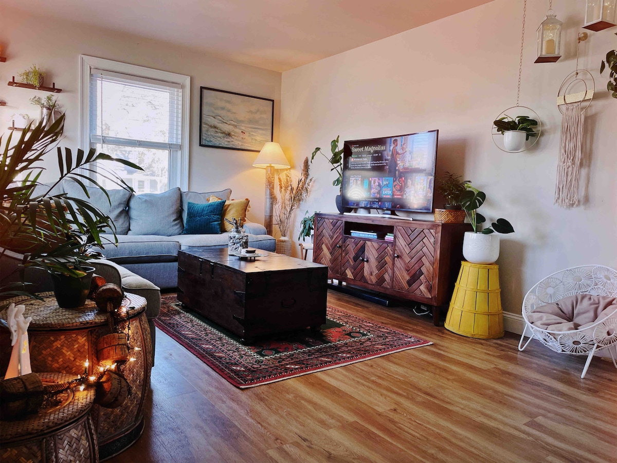 या गेस्ट सुईटमध्ये एक बेडरूम (किंग बेड) आणि पूर्ण बाथ आहे. खाजगी प्रवेशद्वार समोरच्या पोर्चवर आहे आणि जागा उर्वरित घरापासून बंद आहे. जागेमध्ये लिव्हिंग रूम किंवा किचनचा समावेश नाही. परंतु एक लहान रेफ्रिजरेटर, मायक्रोवेव्ह, कॉफी मेकर, आरामदायक बसण्याची जागा आणि आराम करण्यासाठी एक मोठे पोर्च आहे. रूममध्ये एक एअर प्युरिफायर देखील आहे - HEPA फिल्ट्रेशनसह, हवेतील सर्व कणांपैकी 99.9 काढून टाकते. जागा सरासरी हॉटेल रूमच्या आकाराची आहे.