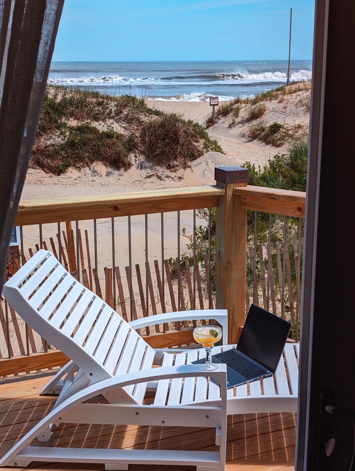 पाळीव प्राण्यांसाठी अनुकूल, ओशनफ्रंट नाग्स हेड कॉटेजमध्ये मोठे महासागर डेक्स, गझेबो, 3 बेडरूम्स, 2.5 बाथ्स, एक आऊटडोअर शॉवर, हॅमॉक्स आहेत. प्रत्येक रूममध्ये समुद्राचे दृश्य आहे - अप्पर लेव्हलमध्ये महासागर आणि जॉकीज रिजचे पॅनोरॅमिक व्ह्यूज आहेत. नाग्स हेडच्या ऐतिहासिक डिस्ट्रिक्ट, 'कॉटेज रो' च्या काठावर वसलेले हे कॉटेज जॉकीच्या रिज स्टेट पार्कच्या आयकॉनिक वाळूच्या ढिगाऱ्यांपासून आणि साउंडसाईड बीच, नाग्स हेड पियर, ऑस्टिनचे सीफूड, ब्लू मून, मुलीगन आणि डाऊडी पार्कपर्यंत चालत आहे.