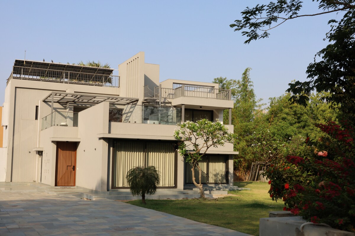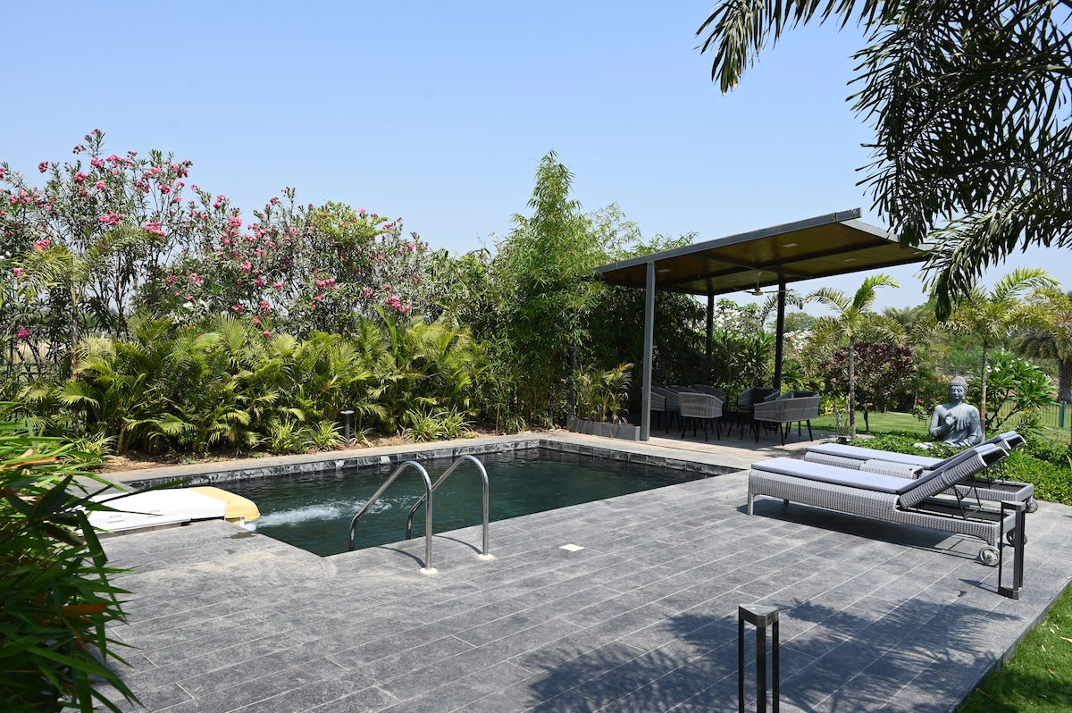 Privacy First: 4 large bedrooms ЁЯЫМ, fully separated from each other in different blocks for complete privacy. тАЛIndoor Comfort: Huge gathering hall ЁЯОЙ & a spacious, well-equipped kitchen. тАЛOutdoor Luxury: Sparkling Swimming Pool ЁЯПК & relaxing Jacuzzi ЁЯЫБ, plus garden sit-out areas. тАЛThe View: Experience soothing, uninterrupted green farmland vistas ЁЯМ│ every day. тАЛPerfect Blend: Rustic comfort meets natural tranquility. Book your serene getaway now! тЬи