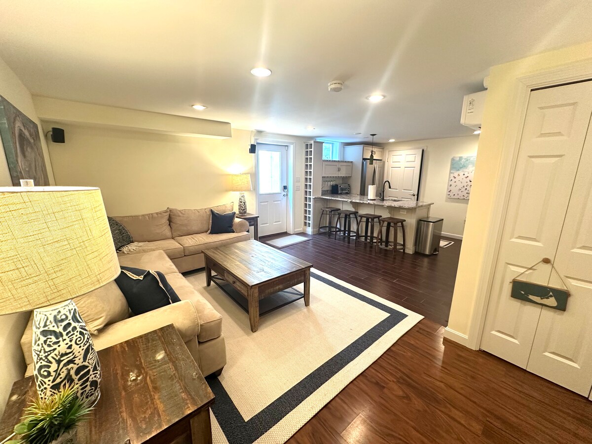 मध्य नॅनटकेटमधील अपडेट केलेला, आधुनिक आणि मोहक काँडो. 1,120 चौरस फूट, पूर्णपणे 8 लोकांना सामावून घेते. लिव्हिंग रूममध्ये थंड नॅनटकेट रात्रींसाठी एक उबदार इलेक्ट्रिक फायरप्लेस आहे. पूर्ण किचन. पॅटीओ, ग्रिल, हॅमॉक आणि आरामदायक आऊटडोअर शॉवरसह खाजगी बॅकयार्ड पुश करा. घराच्या समोरील दोन पार्किंग स्पॉट्स. मध्यवर्ती लोकेशन डाउनटाउन, किराणा स्टोअर्स, कॉफी शॉप्स, रेस्टॉरंट्स आणि नाईट क्लब्जपर्यंत चालण्यायोग्य आहे. तुम्हाला बेटाच्या सर्व भागात घेऊन जाणाऱ्या दोन बस स्थानकांवर जा.