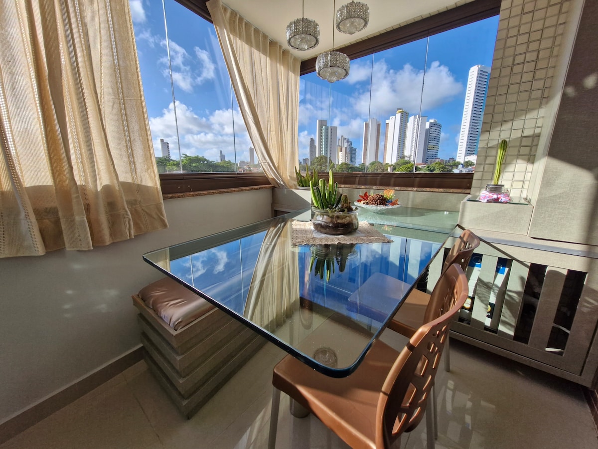 शहराच्या सर्वोत्तम जागांपैकी एकामध्ये सेट करा. कार्यक्षम आणि शांत वातावरणात आराम करताना मार्केट्स, बेकरी, फार्मसी, बीच आणि शॉपिंग मॉल्सच्या निकटतेचा आनंद घ्या. अपार्टमेंटमध्ये 6 लोकांपर्यंतच्या कुटुंबांना किंवा ग्रुप्सना होस्ट करण्यासाठी एक रचना आहे. कारद्वारे अंतर: - 7 मिनिटे. कलाकारांचा बीच आणि काळी वाळू; - काळ्या बीचपासून 20 मिनिटांच्या अंतरावर; - नॉर्डेस्ट सुपरमार्केटपासून 4 मिनिटे (1 किमी); - मिडवे मॉलपासून 3 मिनिटांच्या अंतरावर, शहरातील सर्वोत्तम मॉल; - कॅमारा कॅस्कुडो म्युझियमपासून 500 मीटर अंतरावर.