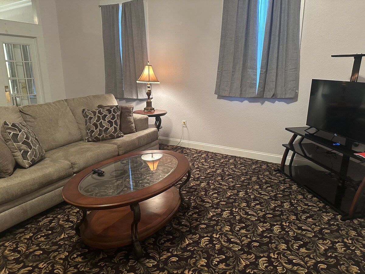 मिनी किचन असलेली टोलेडो बेंड लेक हॉटेल रूम.