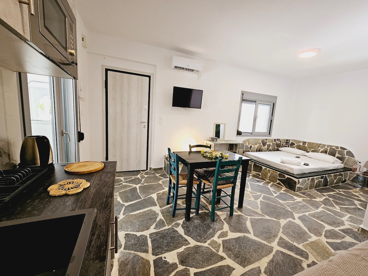 परत या आणि या शांत जागेत आराम करा. लाटांचे ऐकताना अंतर्गत शांती शोधा आणि अनंत दृश्यात हरवून जा. कॅनो हा लिम्निओना बीचसमोरील एव्हिया बेटावरील अगिओई एस्पोरोलोई गावातील एक सुंदर स्टुडिओ आहे. हे एलिफथेरियस व्हेनिझेलोस एयरपोर्ट अथेन्सपासून 2 तासांच्या अंतरावर आहे. कॅनो तुमची वाहतूक व्यवस्थित करू शकते. फक्त आम्हाला विचारा. गावासाठी: Agioi Apostoloi हे सुंदर समुद्रकिनाऱ्यांनी वेढलेले एक मासेमारीचे गाव आहे. गावात शांततापूर्ण क्षणांसाठी भरपूर वेळ मिळतो.