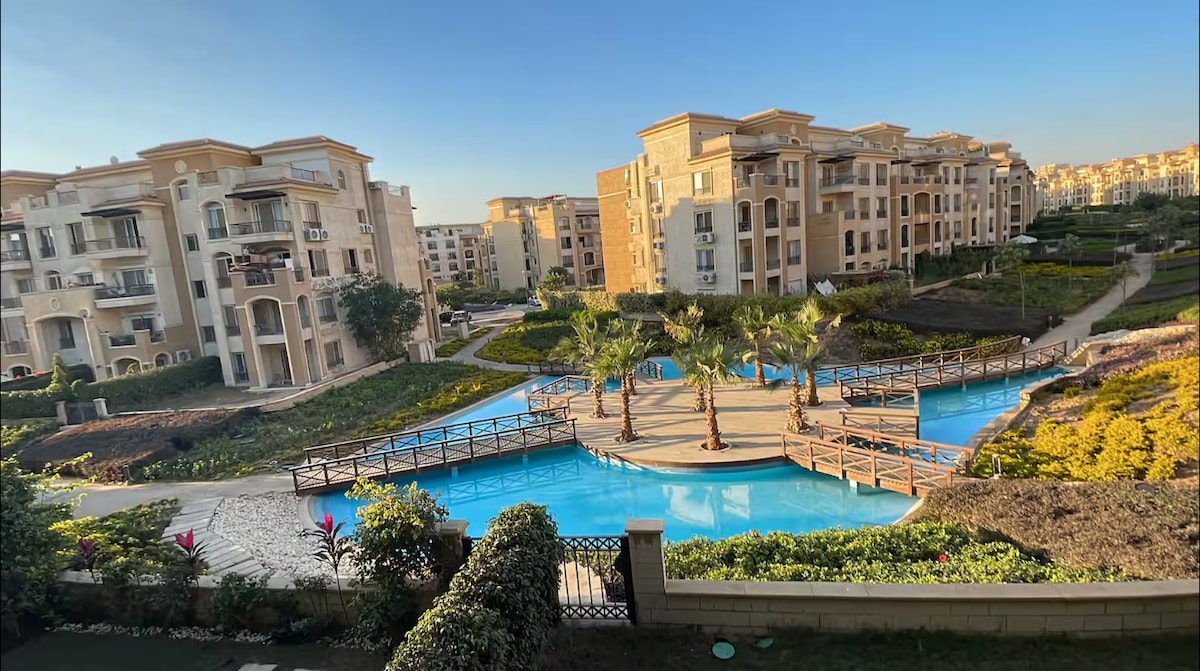 न्यू कैरोच्या मध्यभागी असलेला एक आधुनिक आणि आरामदायक स्टुडिओ, कैरो आंतरराष्ट्रीय विमानतळापासून 20 मिनिटांच्या अंतरावर आणि अमेरिकन युनिव्हर्सिटीच्या जवळ. साधे लाकडी फर्निचर आणि दोनसाठी बेड, 43 इंच स्मार्ट डिस्प्ले, एक आरामदायक काठी आणि एअर कंडिशनर असलेले. सर्व सेवांच्या जवळ, हे हाय - स्पीड इंटरनेट ॲक्सेस, फ्लॅट - स्क्रीन टीव्ही आणि सुसज्ज किचन देते. शांत आणि सुरक्षित वातावरणात अल्पकालीन आणि दीर्घकालीन वास्तव्यासाठी आदर्श.