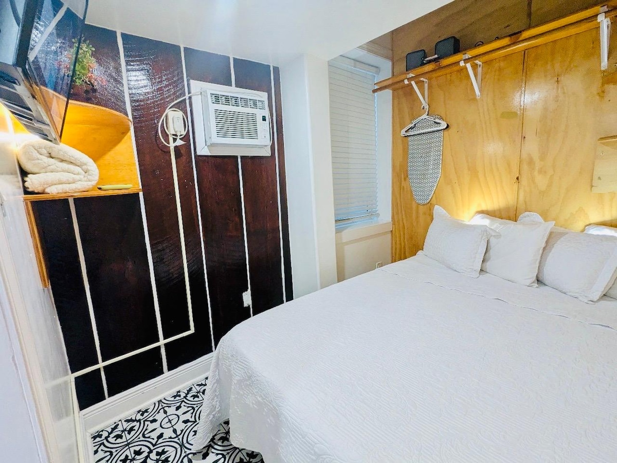 क्लेमेंटिनची रूम बयू सेंट जॉनवरील मिड सिटीमधील एक सुंदर लपण्याची जागा आहे. हे फक्त टाईल्स शॉवर, वॉशर/ड्रायर आणि किंग बेडसह बेडरूम/बाथ आहे. दरवाजा बाहेरच्या वेळेसाठी गझबोच्या बाजूला आहे आणि डेस्कच्या आत 2 जेवणाची व्यवस्था केली जाऊ शकते. स्ट्रीमिंग शोसाठी एक मोठा रोकू टीव्ही, एक मिनी - फ्रिज, मायक्रोवेव्ह, इलेक्ट्रिक केटल आणि कॉफी फनेल सकाळची कॉफी किंवा चहा बनवण्यासाठी आणि नाश्ता गरम करण्यासाठी डिशेस आणि फ्लॅटवेअर आहेत. तसेच, ते 2 बेड/2 बाथ फॅमिली बुकिंगसाठी आमच्या स्वीट सुईटसह एकत्र केले जाऊ शकते
