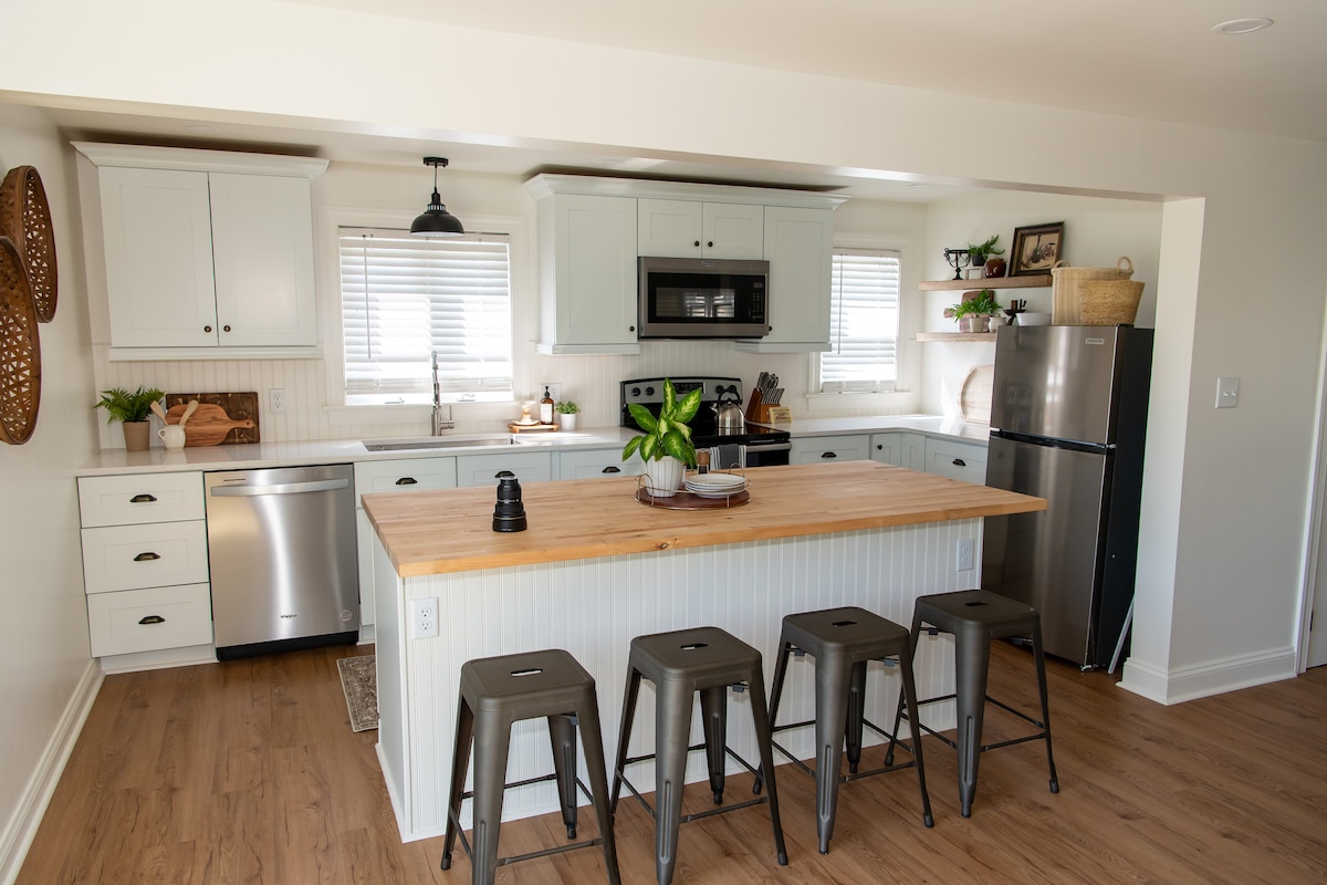 नयनरम्य चेसापीक सिटीच्या मध्यभागी असलेल्या बोहेमिया अव्हेन्यूवर वसलेल्या या मोहक कॉटेजचा अनुभव घ्या. "अव्हेन्यूवर" पोर्च - सिटिंगचा आनंद घ्या किंवा असंख्य स्थानिक निवडक दुकाने, रेस्टॉरंट्स, ब्रू पब आणि अगदी योगा स्टुडिओला भेट द्या, हे सर्व फक्त पायर्यांच्या अंतरावर आहे. C&D कालवा नेव्हिगेट करणार्या भव्य मालवाहू जहाजांवर आश्चर्यचकित व्हा, तुमच्या दारापासून फक्त 2 मिनिटांच्या अंतरावर. 2 कार्ससाठी खाजगी ऑफ स्ट्रीट पार्किंग.