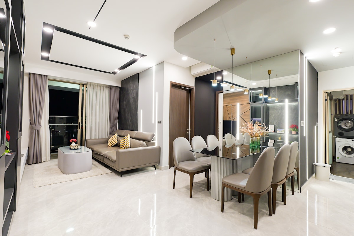 मॉडर्न रिव्हरफ्रंट ओएसिसमध्ये तुमचे स्वागत आहे – जिथे डिस्ट्रिक्ट 7 च्या मध्यभागी लक्झरी शांततेची पूर्तता करते! हे अपस्केल 2 बेडरूमचे अपार्टमेंट एक मोहक आणि शांत राहण्याची जागा देते, साईगॉन नदीचे अप्रतिम दृश्ये आणि दोलायमान फू माय हंग शहरी भागापासून फक्त 1 किमी अंतरावर एक आदर्श लोकेशन आहे
