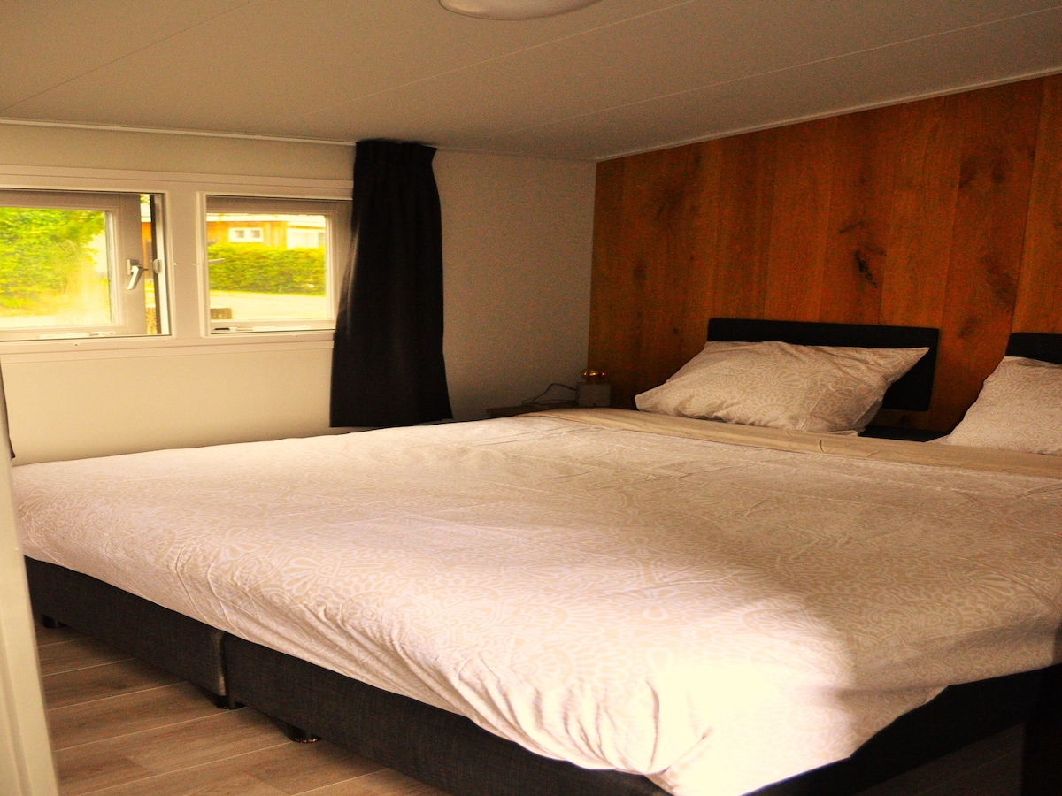 At the edge of the park, lies this privately situated 50m2 chalet with a 26.5m2 veranda. This chalet sleeps 4. *Living room with French doors. *Kitchen with gas stove, coffee maker, dishwasher, combination oven/microwave/grill, and refrigerator. *Two bedrooms. *Bathroom with toilet, sink, and shower: hot and cold water. *Veranda with furniture *Terrace with garden furniture. *Deck by the water with a picnic table. *Free Wi-Fi. The park has a lake suitable for swimming.