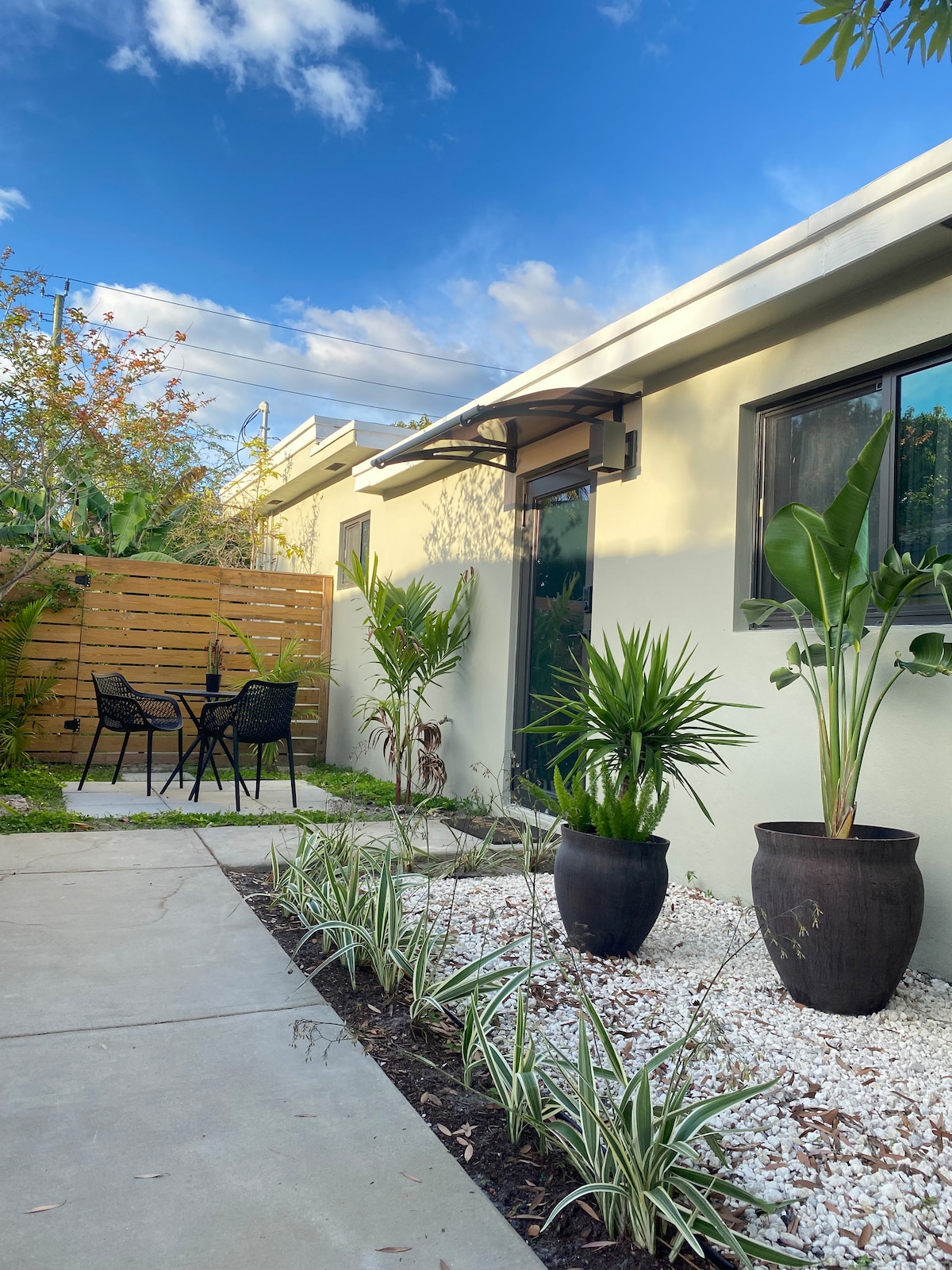 स्वतंत्र प्रवेशद्वार आणि बागेच्या दृश्यांसह खाजगी आणि शांत स्टुडिओ. मुख्य घरापासून वेगळे असलेले हे घर आरामदायक, शांत आणि सर्व आवश्यक सुविधांनी सुसज्ज आहे. मायामी एक्सप्लोर करण्यासाठी परफेक्ट बेस—साऊथ बीच, विनवूड आणि डाऊनटाऊन फक्त 15 मिनिटांच्या अंतरावर. जवळपास उत्तम स्थानिक रेस्टॉरंट्स असलेल्या सुरक्षित, मैत्रीपूर्ण परिसरात स्थित आहे. आराम करण्यासाठी आणि रिचार्ज करण्यासाठी एक आरामदायक, सोयीस्कर रिट्रीट.