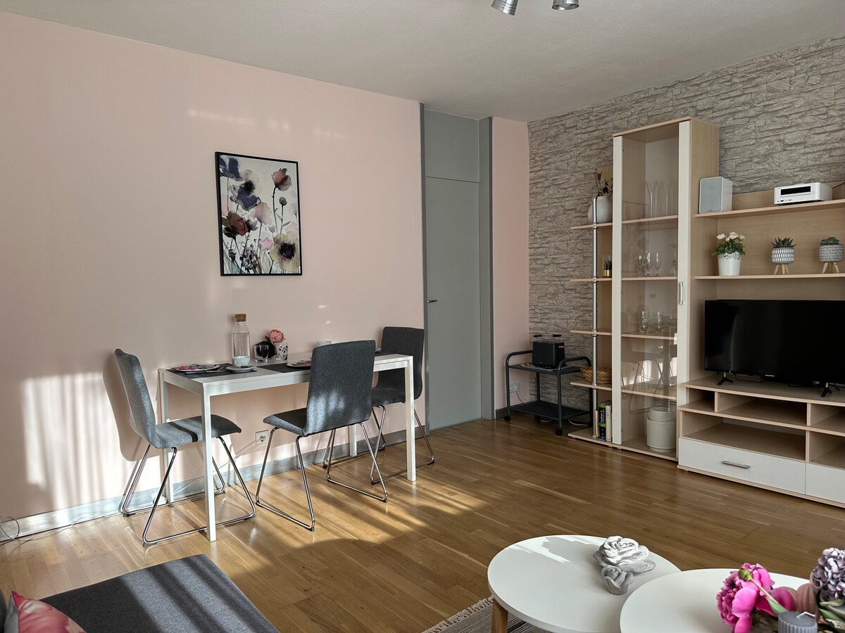 परत या आणि या शांत, स्टाईलिश जागेत आराम करा. हे वैयक्तिक अपार्टमेंट एक इन - लॉज आहे आणि बॉहौस - शैलीच्या आर्किटेक्टच्या घराचे स्वतःचे प्रवेशद्वार आहे. अपार्टमेंट जास्तीत जास्त 3 लोकांसाठी योग्य आहे आणि आराम करण्यासाठी तुम्हाला आवश्यक असलेले सर्व काही आहे. मे 2023 मध्ये या अपार्टमेंटचे नूतनीकरण करण्यात आले. ही प्रॉपर्टी झिरंडॉर्फच्या अतिशय शांत भागात आहे, तुमच्या दारावर पार्किंग आणि सार्वजनिक वाहतुकीची चांगली कनेक्शन्स आहेत.