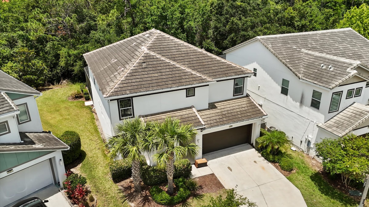 हे घर बुक करू शकत नाही? काळजी करू नका! तुमच्या गरजा पूर्ण करू शकतील अशा समान घरांसाठी माझे प्रोफाईल तपासा. आमच्याकडे 24/7 ग्राहक सेवा आहे! दररोज उद्यानांना भेट देऊन थकले आहात? या सुंदर 2,263 चौरस फूट घराच्या आत जा आणि तुमच्या कुटुंबाचे मनोरंजन करण्यासाठी आणि मजा करण्यासाठी खास डिझाईन केलेली एक खाजगी बार्बेक्यू, पूल आणि गेम रूम शोधा. रेस्टॉरंट, वॉटर स्लाईडसह पूल, स्पा, आळशी नदी, जिम, खेळाचे मैदान आणि टेनिस कोर्ट असलेल्या रिसॉर्टच्या क्लबहाऊसचा आनंद घ्या. आजीवन सुट्टीचा अनुभव घ्या!