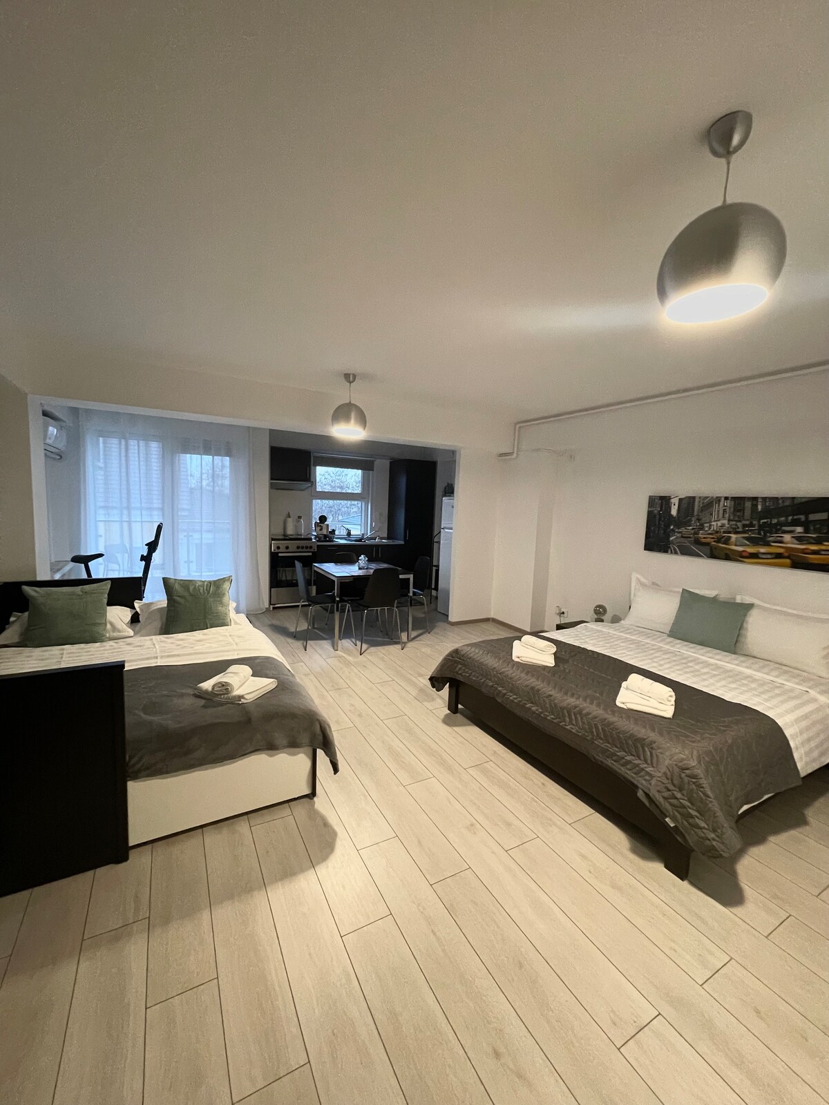 Experience the charm of our urban loft in the heart of the city! Enjoy the peace in our elegant bedroom, with wide windows that fill the room with sunlight, and settle into a luxurious marble bathroom. Located in a lovely neighborhood, this inviting space offers a fully equipped kitchen, a relaxing living area, and a small balcony. Perfect for the modern traveler who values style and comfort. Book your stay - delight in the simple luxuries and make this loft your personal hideaway.