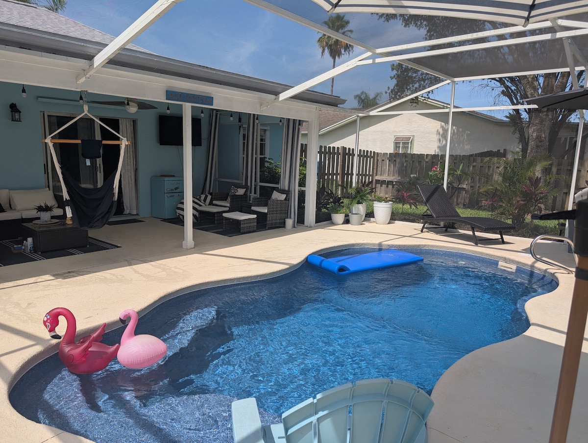 "कोरल बीच हाऊस" पूर्णपणे नूतनीकरण केले गेले आहे!डाउनटाउन कोका बीचच्या अगदी थोड्या अंतरावर असलेल्या, तुम्ही दिवसा बीचवर लटकण्याचा आणि सीबीने ऑफर केलेल्या रेस्टॉरंट्स, बार आणि सर्व आकर्षणे शोधण्याचा आनंद घ्याल. होममध्ये स्टेनलेस स्टीलची उपकरणे, "सुडे" ग्रॅनाईट काउंटरटॉप्स आणि स्मार्ट टीव्ही आहेत. कव्हर केलेले पॅटीओ, हॅमॉक स्विंग्ज आणि कालव्याचे व्ह्यूज असलेली मोठी आऊटडोअर एंटरटेनिंग जागा. डॉल्फिन आणि मॅनेटीजसह केळी नदीमध्ये कयाकिंगचा आनंद घ्या!