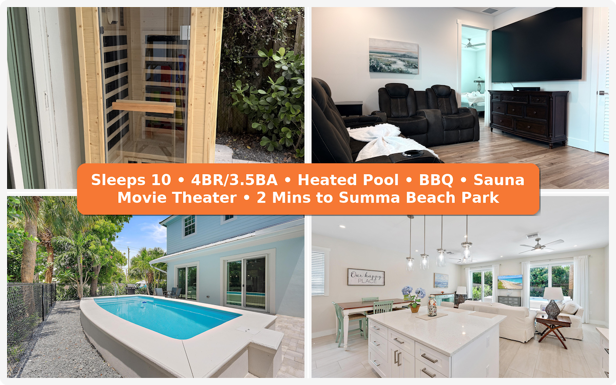 West Palm Beach Oasis! Explore a luxurious 3BR/2BA resort-style escape that sleeps up to 8 guests. Relax by the sparkling pool, unwind in the sauna, or enjoy movie nights at the outdoor theater. The game room & Tiki Bar make this the ideal spot for entertainment. Stylish decor, an 85" Smart TV, & modern amenities create the ideal setting for relaxation. At Russi Retreat, you're not just booking a stay; you're securing a private sanctuary in South Florida. Book your stay today!