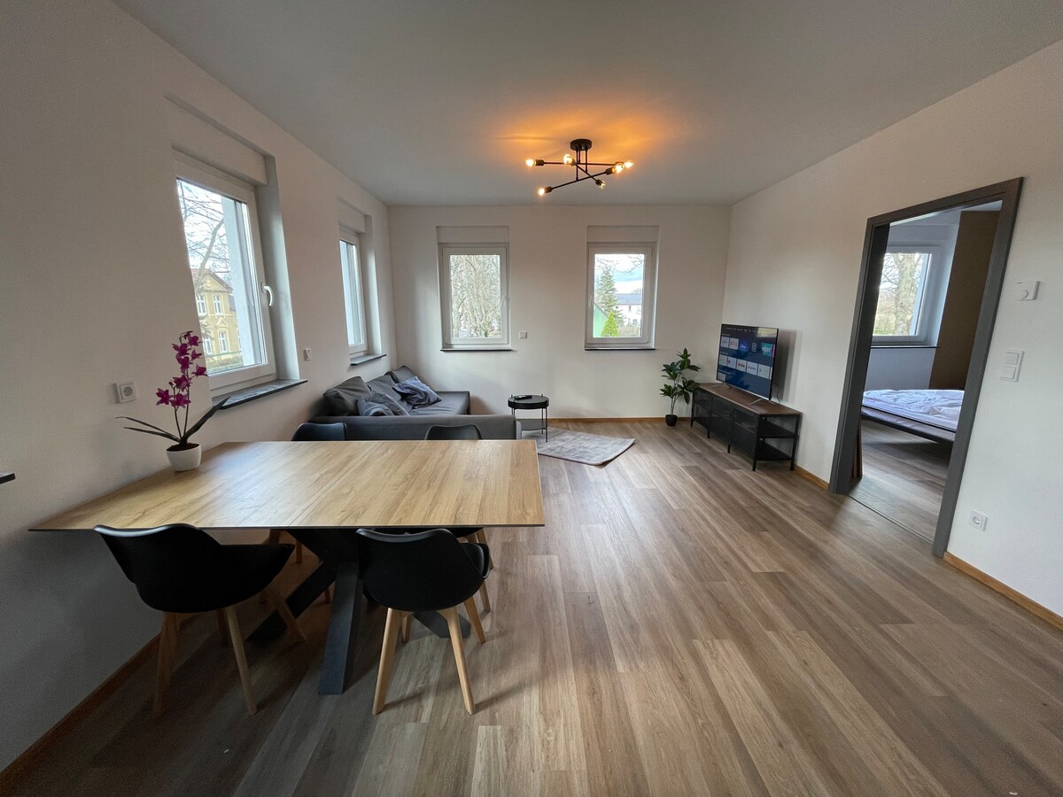 बर्लिन शहराच्या सीमेवर शांत लोकेशनमध्ये आधुनिक, उजळ 64 चौरस मीटरचे अपार्टमेंट. चांगल्या प्रकारे सांभाळलेल्या दोन कुटुंबांच्या घरातील निवासस्थानामधून हिरवळीचे दृश्य दिसते. S-Bahn (थेट Mitte ला जाणारी S2 लाइन) सुमारे 17 मिनिटांत पायी पोहोचली जाऊ शकते, पर्यायाने नियमित बस सेवा आहे. एक सुपरमार्केट आणि हेलिओस क्लिनिकम बर्लिन-बुच जवळपास आहेत. A11 मोटरवे एक्झिट फक्त काही मिनिटांच्या अंतरावर आहे. वाय-फाय, किचन आणि आरामदायक वातावरणासह – पूर्णपणे सुसज्ज.