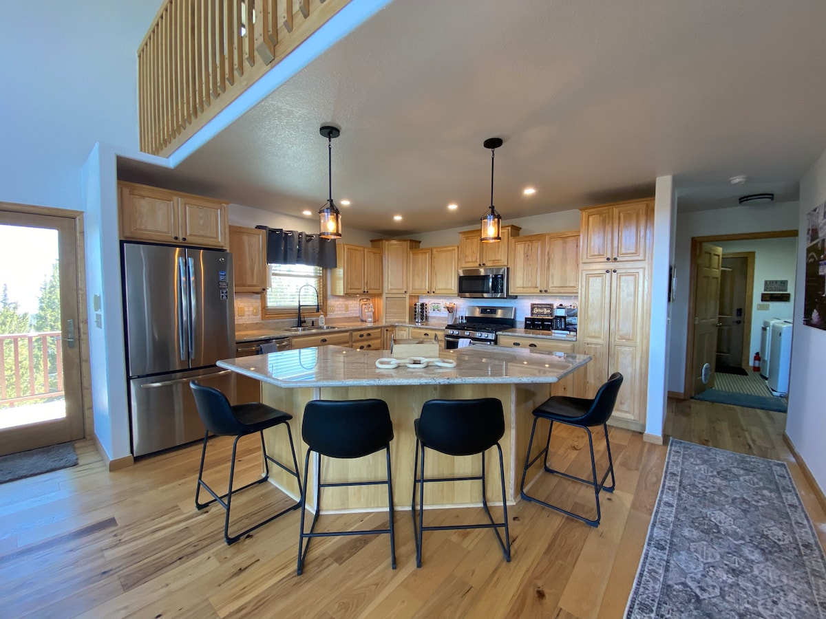 हॉट टब + डेक व्ह्यूज • शहरापासून 5 मिनिटे • 8 जणांसाठी जागा