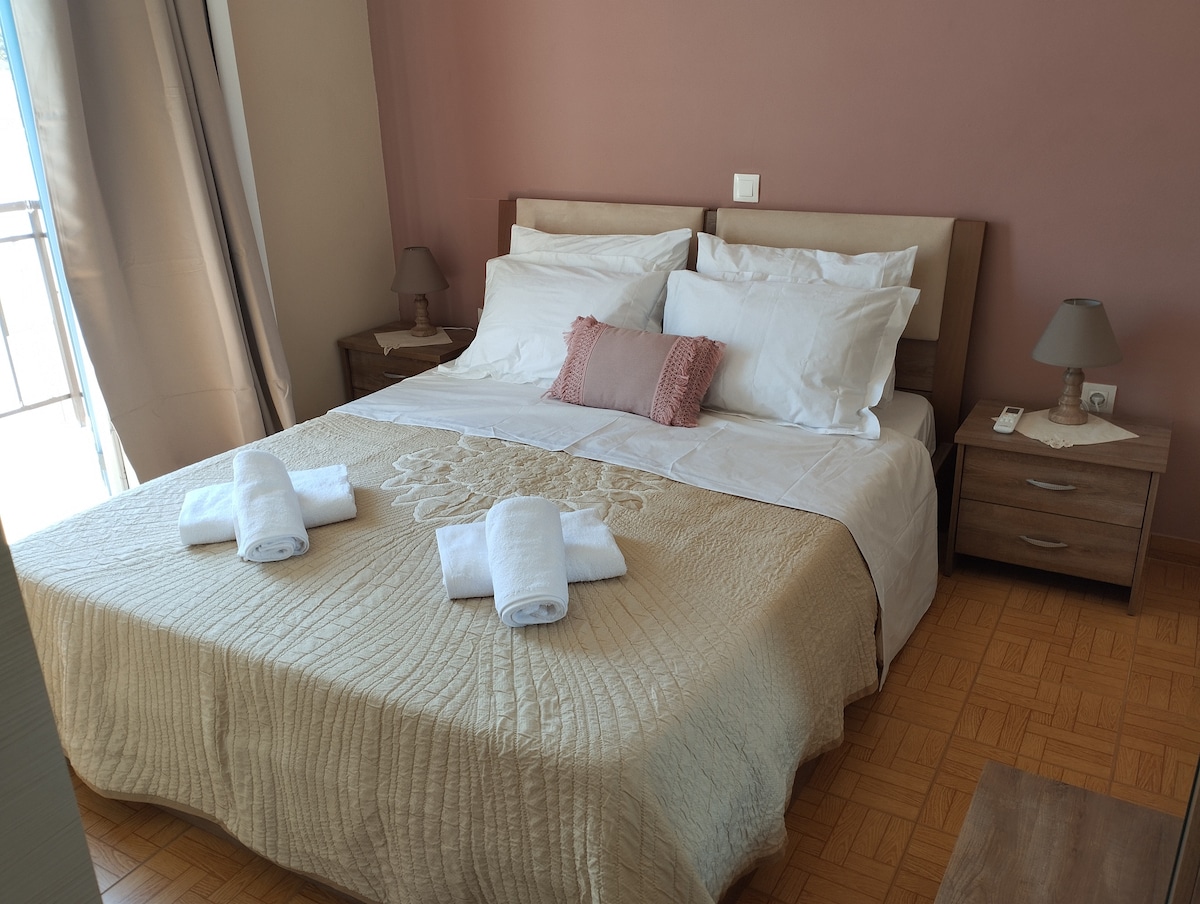 लोफोस हे एक नूतनीकरण केलेले अपार्टमेंट आहे जे आमच्या गेस्ट्सची काळजी आणि प्रेमाने डिझाईन केलेले आहे. नाक्सोस शहराच्या मध्यभागी, सर्वात मध्यवर्ती चौकात, सेंट जॉर्ज बीचपासून 250 मीटर अंतरावर आणि रेस्टॉरंट्स, बार, सुपरमार्केट्स, फार्मसीज, बेकरी, कार/मोटो/बाईक रेंटल्स, कॉफी शॉप, फॅशन शॉप्स आणि बरेच काही यासारख्या प्रत्येक नाक्सियन हॉटस्पॉटच्या अगदी जवळ आहे, तसेच ते नाक्सोस बंदरापासून फक्त 700 मीटर अंतरावर आहे, जिथे बस स्टॉप देखील आहे.