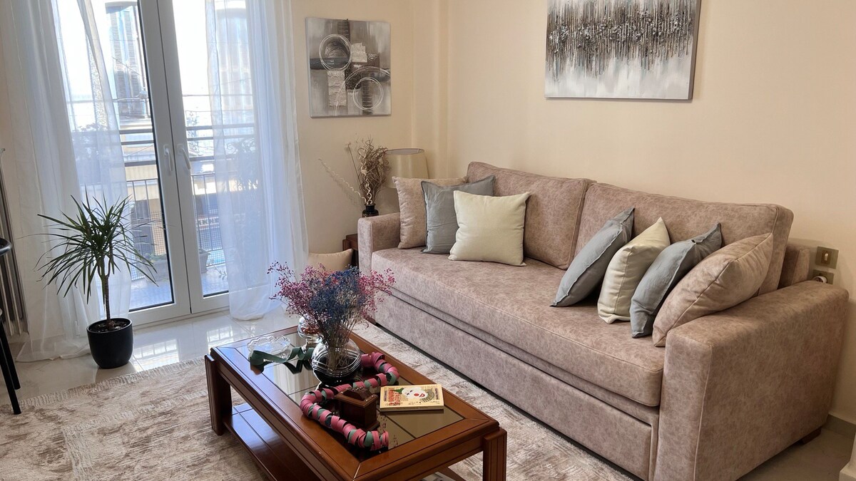 अपार्टमेंट पॅट्रासच्या मध्यभागी, मध्यवर्ती चौक, वासिलिओस जॉर्जियू स्क्वेअरपासून फक्त 50 मीटर अंतरावर आहे. शहरातील मुख्य व्यावसायिक पादचारी रस्ते, कॅफे, रेस्टॉरंट्स, मनोरंजन केंद्रे तसेच सर्व सार्वजनिक सेवांपर्यंत पायी जाण्यासाठी जलद प्रवेश. हे तिसऱ्या मजल्यावर आहे, ते 50 चौरस मीटर आहे, त्यात डबल बेड आणि सिंगल बेड असलेली बेडरूम, सिंगल बेड आणि सिंगल सोफा बेड असलेली लिव्हिंग रूम, किचन, बाथरूम आहे आणि त्यात चार लोकांना सामावून घेता येते.