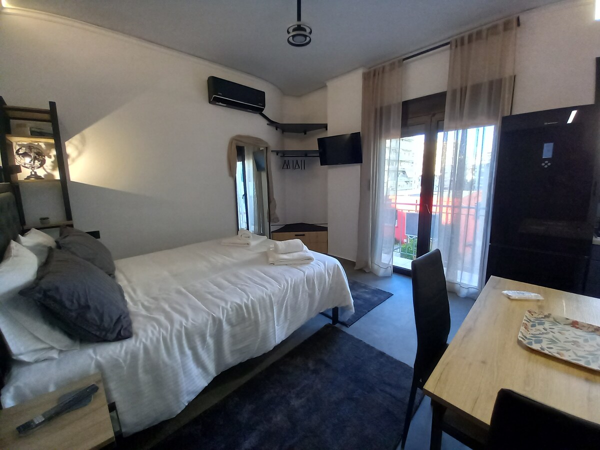 चित्तवेधक शहराच्या दृश्यांसह आणि प्रशस्त टेरेससह आमच्या सौंदर्याचा स्टुडिओमध्ये तुमचे स्वागत आहे! सौंदर्याचा स्पर्श असलेले हे अपार्टमेंट एक उबदार पण आधुनिक वातावरण देते, ज्यामुळे ते जोडप्यांसाठी किंवा सोलो प्रवाशांसाठी एक परिपूर्ण रिट्रीट बनते. शांततेत सुटकेचे ठिकाण प्रदान करणाऱ्या मोठ्या टेरेससह, दोलायमान शहर एक्सप्लोर केल्यानंतर आराम करण्यासाठी ही एक आदर्श जागा आहे. आता बुक करा आणि वरून पॅट्रासच्या मोहकतेचा अनुभव घ्या!