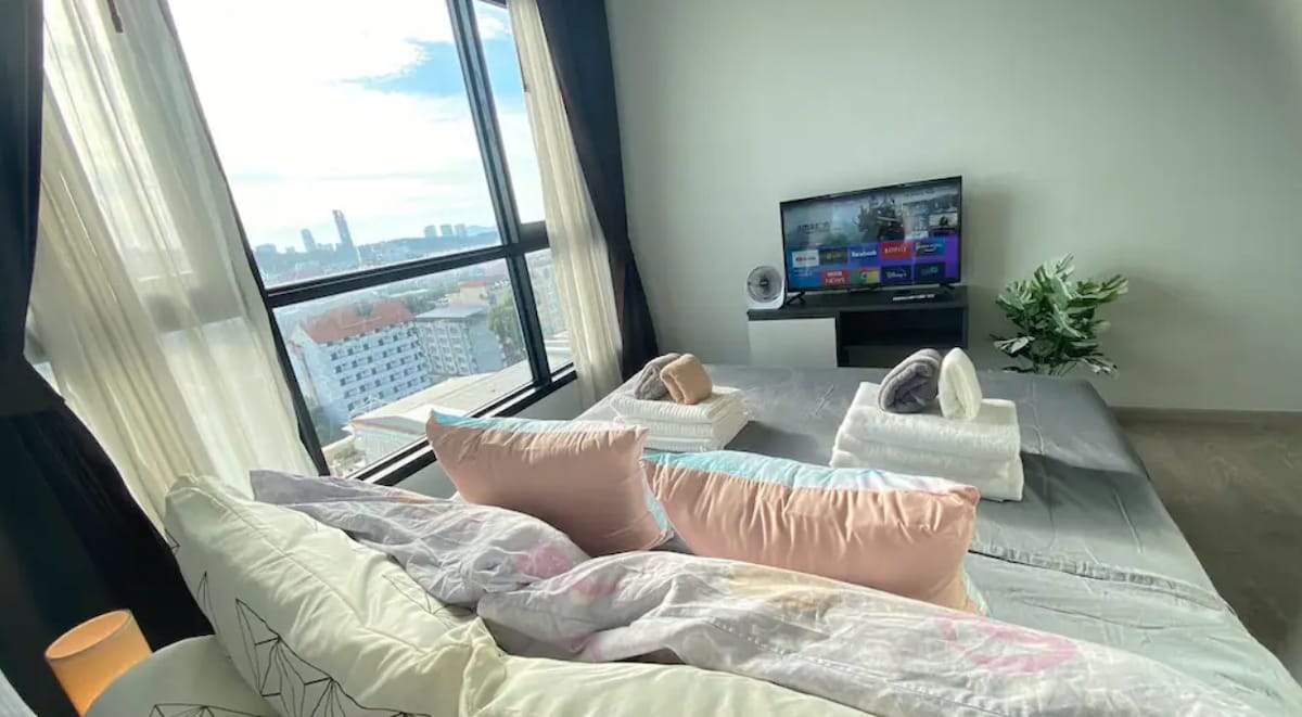 उंच मजला (22 वा )- पटायाच्या मध्यभागी असलेला एक लक्झरी काँडो बीचपासून फक्त एक ब्लॉक अंतरावर आहे. क्वीन बेडचा आकार. वर्कस्पेसेस. रूम आणि काँडोमध्ये हाय स्पीड वायफाय. खाडीवरील सुंदर दृश्यासह आरामदायी जागेत सर्व आरामाचा आनंद घ्या. अपार्टमेंटमध्ये एक कॉफी मशीन, वॉशिंग मशीन, एक वर्किंग जागा आणि सर्व कुकिंग भांडी आहेत. सेफ बॉक्स उपलब्ध आहे. बेडरूममध्ये HD केबल टीव्ही आणि नेटफ्लिक्स उपलब्ध आहेत. पूल, सॉना, जकूझी आणि स्टीम बाथचा आनंद घ्या. काँडोमध्ये एक फिटनेस सेंटर उपलब्ध आहे.