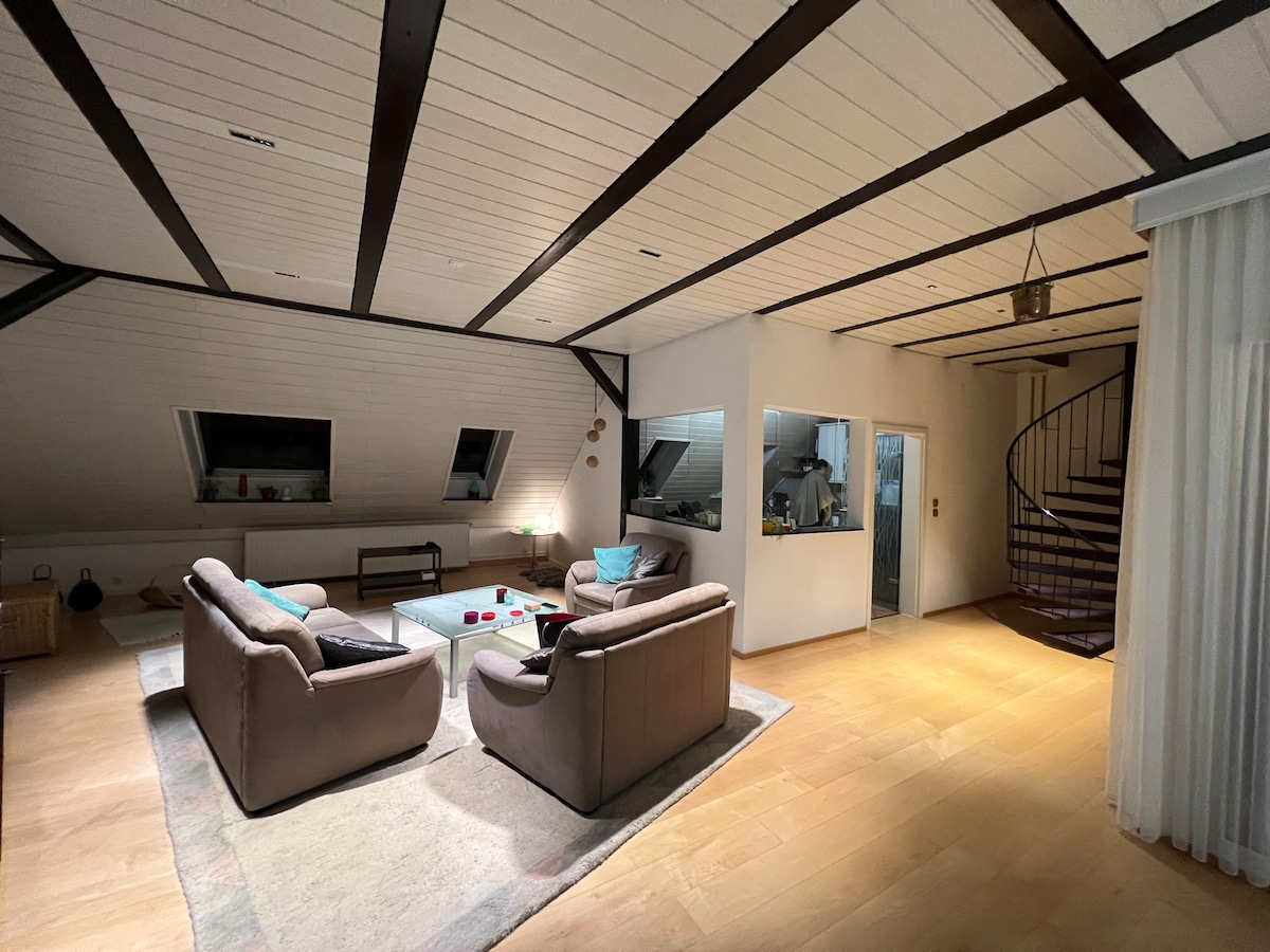 Du parkst direkt vor dem Haus und hast dann in der 1. Etage eine komplette, schicke und moderne Etagenwohnung inkl. Dachterasse mit Blick auf den Garten f├╝r dich, die du durch einen separaten Eingang betrittst. Gro├Яes Doppelbett im Schlafzimmer, komplette K├╝che, Bad mit Dusche und Badewanne, Fernsehzimmer mit Ausziehsofa als zus├дtzliche Schlafm├╢glichkeit f├╝r eine dritte Person. Wenn das Wetter es zul├дsst, bietet es sich an, auf der sch├╢nen Dachterasse zu sitzen und die Ruhe zu genie├Яen.