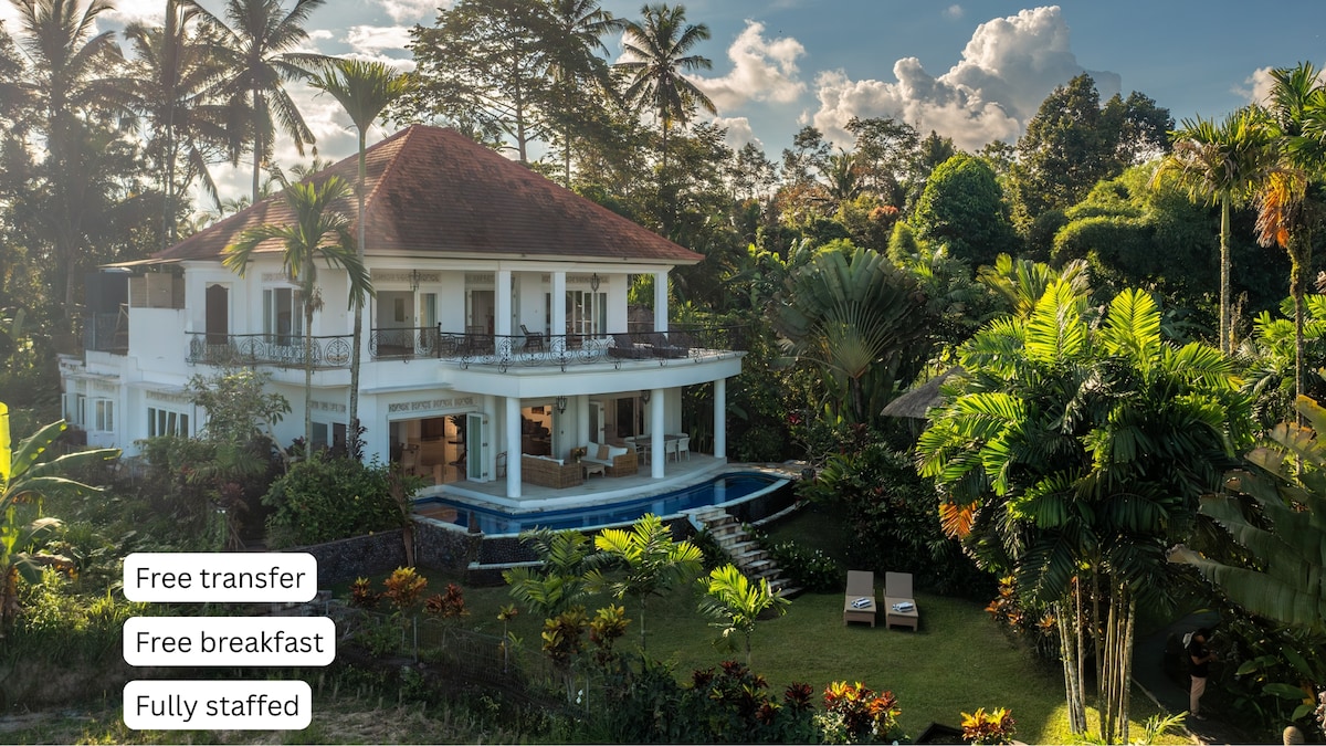 Villa Shamballa is a spiritual and tranquil haven that offers an intimate and indulgent private villa experience. This romantic hideaway magically perched atop a ravine along the mystic Wos River is the ideal location for a couple especially for their honeymoon and anniversary and birthday. "Special Offer only for honeymoon and Birthday (same month of your stay) - Booking by 1 Nov 2025. Complimentary 3 course pool side romantic candlelit dinner - minimum "3 nights" stay only