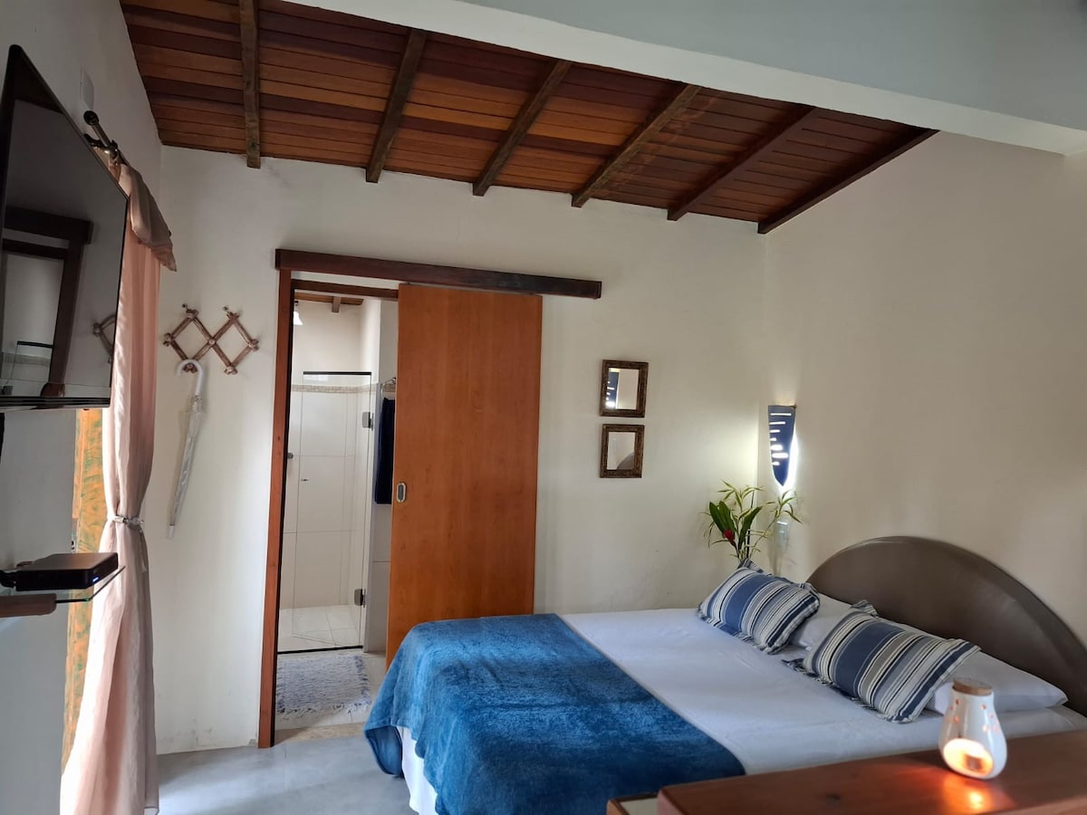 एक परिपूर्ण सेटिंगची कल्पना करा... तुम्हाला ते सापडले आहे! इल्हा मार सुईट हा निःसंशयपणे इल्हाबेलामधील तुमचा सर्वोत्तम पर्याय आहे. यात डबल हॅमॉक, टेबल आणि दोन बेंच असलेली एक मोठी बाल्कनी आहे — हे सर्व समुद्र आणि सूर्यास्ताचे अविश्वसनीय दृश्य देण्यासाठी डिझाइन केलेले आहे! सुईटमध्ये क्वीन बेड, वॉर्डरोब, एअर कंडिशनिंग, सीलिंग फॅन, मिनीबार, 50" टीव्ही, फ्लोअर कपड्यांची लाईन, एक केटल, 2 कप आणि 2 ग्लास आहेत, ज्यामुळे गेस्टला या नंदनवनात सुंदर दिवसानंतर कॉफी तयार करता येते.