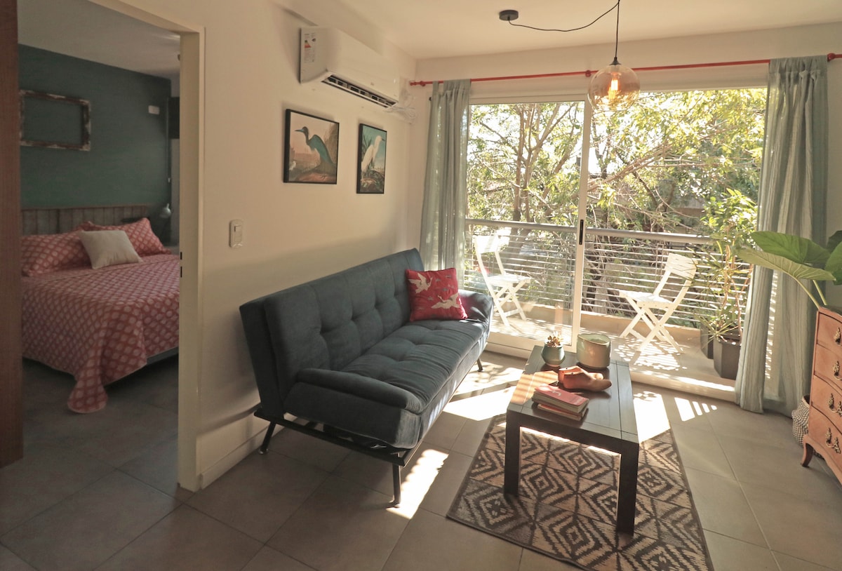 बाल्कनी, पूर्णपणे सुसज्ज किचन, सोफा बेड असलेली लिव्हिंग रूम, एअर कंडिशनिंग आणि स्मार्ट टीव्ही असलेल्या या आधुनिक 1-बेडरूमच्या अपार्टमेंटमध्ये रोसारिओच्या तुमच्या भेटीचा आनंद घ्या नदी, अल्टो रोसारियो आणि सर्वोत्तम रेस्टॉरंट्स जवळ, पूल आणि जिमसह उजळ जागा, उबदार सजावट. जोडप्यांसाठी, कुटुंबांसाठी, बिझनेस प्रवाशांसाठी आणि मित्रांसह लहान किंवा लांबच्या सहलींसाठी योग्य. रोझारियोमध्ये आरामदायी, डिझाइन आणि उत्कृष्ट लोकेशन. दिवसाचे 24 तास सुरक्षा!