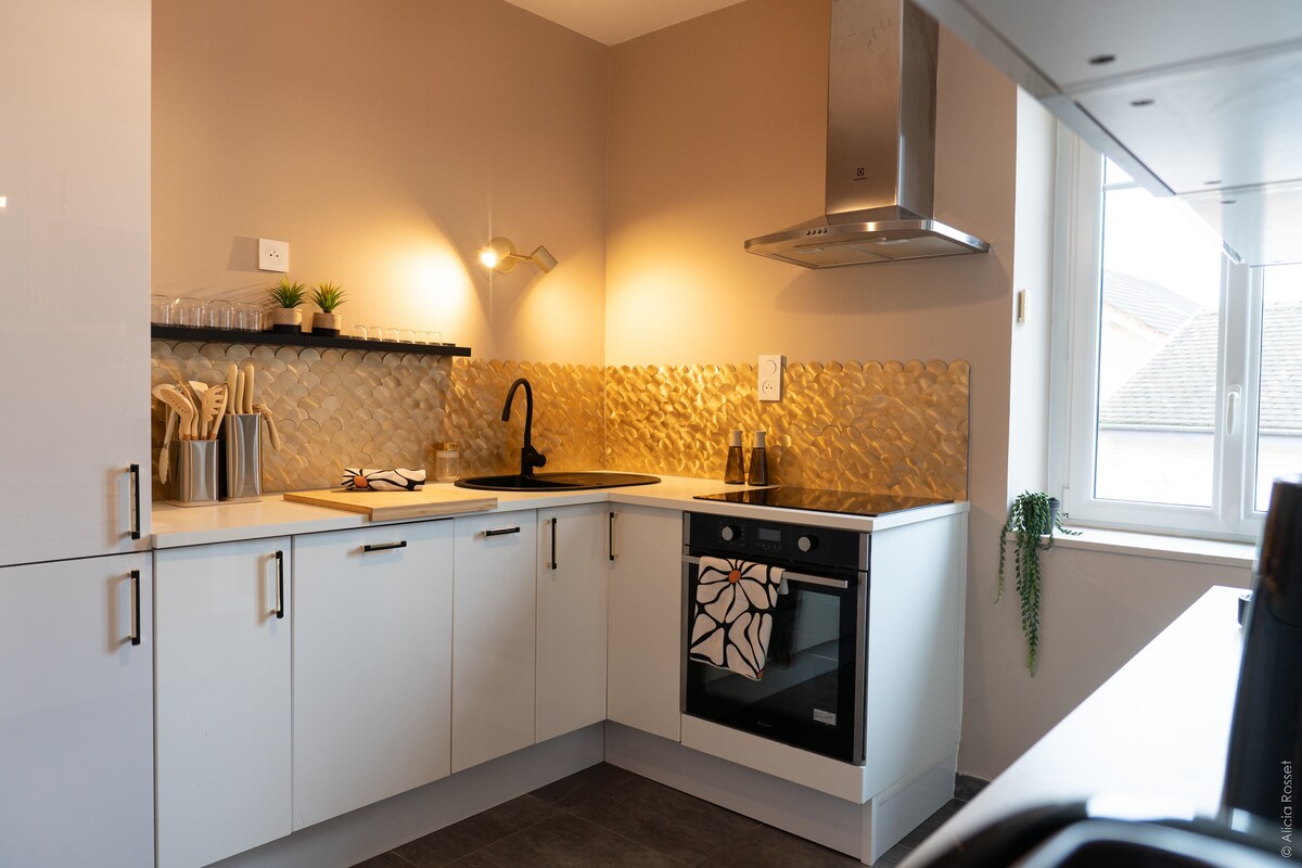 लियॉनच्या दोलायमान क्रॉक्स - रुसे जिल्ह्यातील तुमच्या पुढील शहरी गेटअवेमध्ये तुमचे स्वागत आहे! हे अपवादात्मक अपार्टमेंट, ताजे नूतनीकरण केलेले आणि सावधगिरीने सुशोभित केलेले, अविस्मरणीय वास्तव्यासाठी तुमच्यासाठी दरवाजे उघडते. लियॉनचा जादुई व्ह्यू: विशेषाधिकार असलेल्या लोकेशनवर स्थित, हे अपार्टमेंट संपूर्ण शहराचे नेत्रदीपक दृश्य देते. जकूझी डुओ: कल्पना करा की तुम्ही जपानी वातावरणात आरामदायी आंघोळीसाठी तयार आहात. आमची जागा विश्रांतीच्या अतुलनीय क्षणांसाठी डिझाईन केलेली आहे.