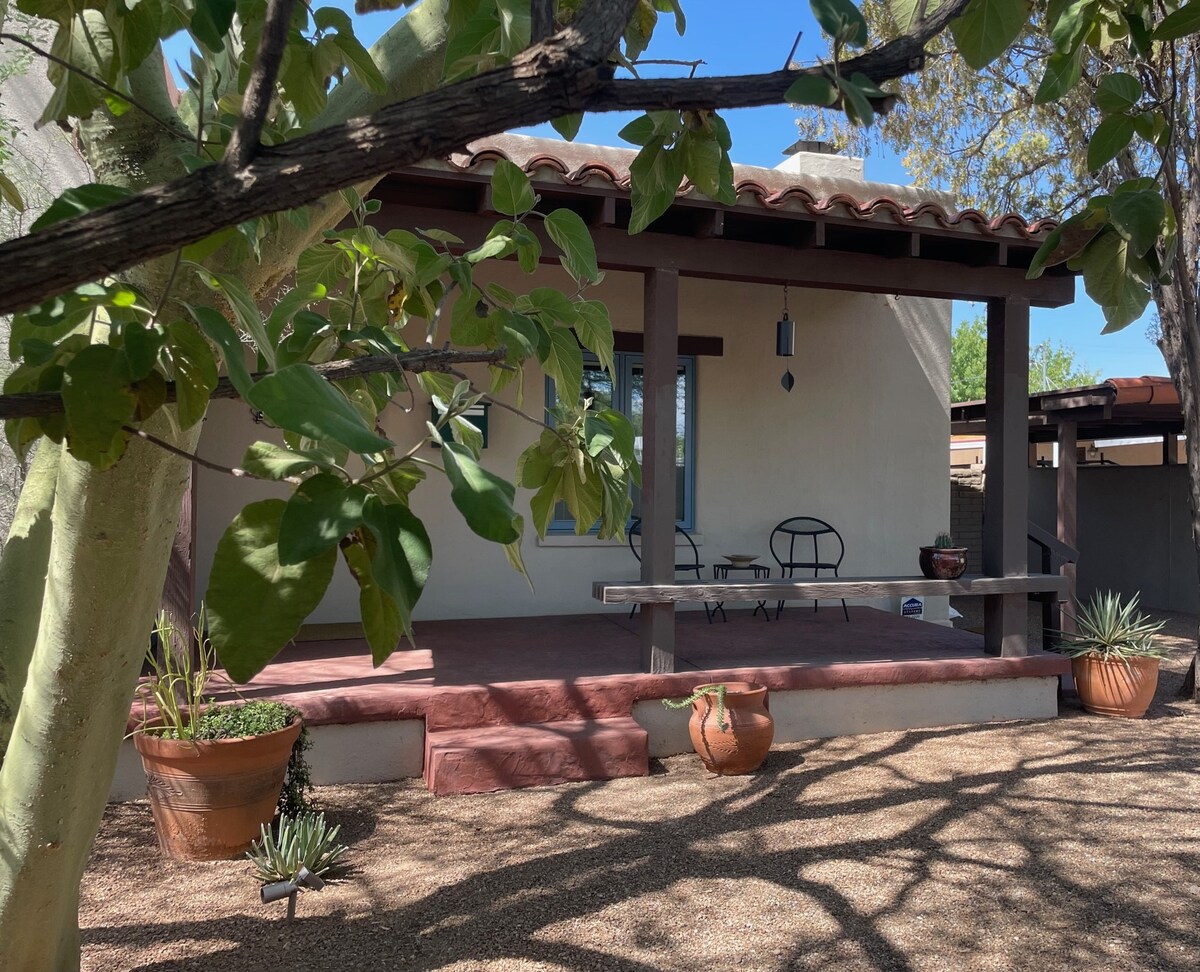 UofA, डाउनटाउन, बॅनर मेडिकल सेंटर, टक्सन बोटॅनिकल गार्डन्स आणि ॲरिझोना इनपासून काही अंतरावर असलेल्या ऐतिहासिक पालो व्हर्डे परिसरात स्थित 1 9 37 चा ॲडोबी बंगला. जाड ॲडोबच्या भिंती आणि डबल - पॅन खिडक्या हे एक शांत निवांत ठिकाण बनवतात. कव्हर केलेले अंगण, सुसज्ज वाळवंटातील लँडस्केप - समोर आणि मागे - आणि खाजगी आऊटडोअर शॉवरचा आनंद घ्या. उच्च - अंत उपकरणे आणि कॅबिनेट/डेस्क/मर्फी बेड कॉम्बिनेशनसह व्हिन्टेज मोहकतेसह समकालीन सुविधा एकत्र करते