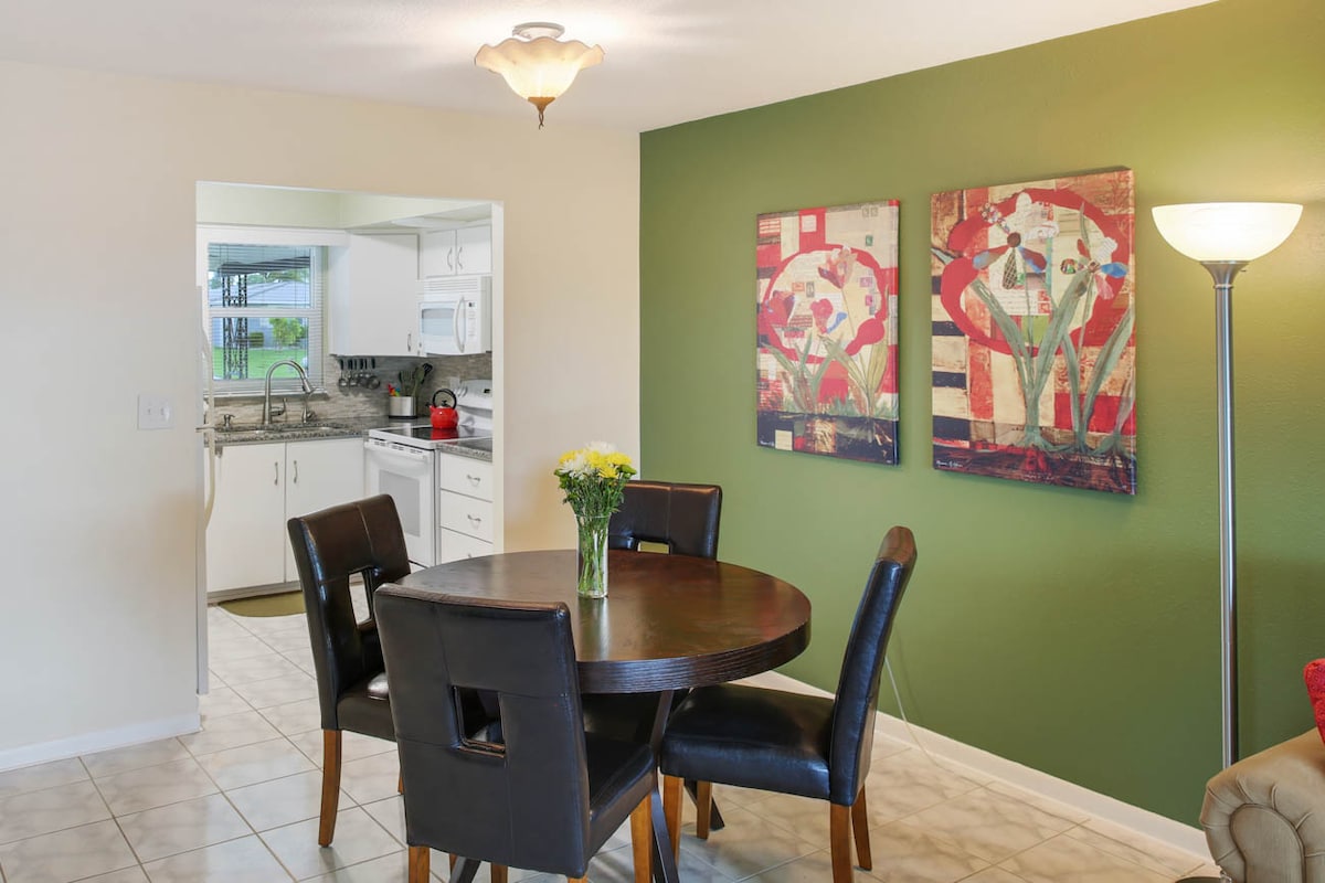 ही जागा त्याच्या अनोख्या सजावटीमुळे ट्रॉपिकल व्हायब्जसह एक शैली आहे. ऐतिहासिक डाउनटाउन न्यू पोर्ट रिचीजवळ मध्यभागी स्थित. आम्ही ट्रिनिटी एरियापासून काही मिनिटांच्या अंतरावर आहोत. तुम्ही जवळपासच्या टारपॉन स्प्रिंग्स स्पंज डॉक्स, हनीमून आयलँड किंवा क्लिअरवॉटरला भेट देऊ शकता ज्यांना देशातील टॉप 10 बीचपैकी एक म्हणून रेटिंग दिले गेले आहे. आम्ही मध्यवर्ती ठिकाणी 3 कम्युनिटी रुग्णालयांजवळ आहोत. ट्रॅव्हल नर्सेस किंवा व्यावसायिकांचे स्वागत आहे. तुम्ही सुट्टीसाठी प्रवास करत असाल किंवा काम करत असाल तर ही जागा तुमच्यासाठी आहे!